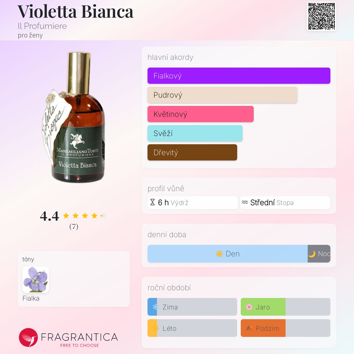 Violetta Bianca podle Il Profumiere je Floral vůně pro ženy. Violetta Bianca byl/a uveden/a v roce 2017. "Nosem" za touto vůní je Massimiliano Torti.