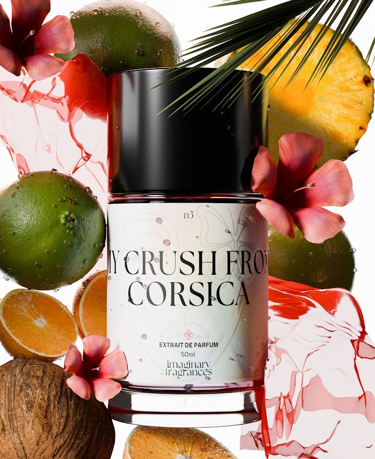 My Crush From Corsica podle Imaginary Fragrances je Floral vůně pro ženy a muže. Toto je nová vůně. My Crush From Corsica byl/a uveden/a v roce 2024. "Nosem" za touto vůní je Sachin Singh. Vrchní tóny jsou Ananas, Kokos, Zázvor a Limetka; střední tóny jsouJantarové dřevo, Ibišek, Jasmín a Pryskyřice ; základní tóny jsou Šafrán, Pižmo, Rum, Mandarinka a Mořské tóny.