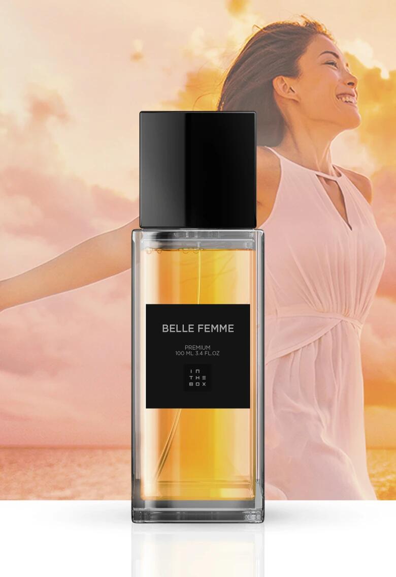 Belle Femme podle In The Box je Floral Woody Musk vůně pro ženy. Toto je nová vůně. Belle Femme byl/a uveden/a v roce 2024. Vrchní tóny jsou Růže a Broskev; střední tóny jsouPižmo a Jantar (ambra) ; základní tóny jsou Santalové dřevo a Pačuli.