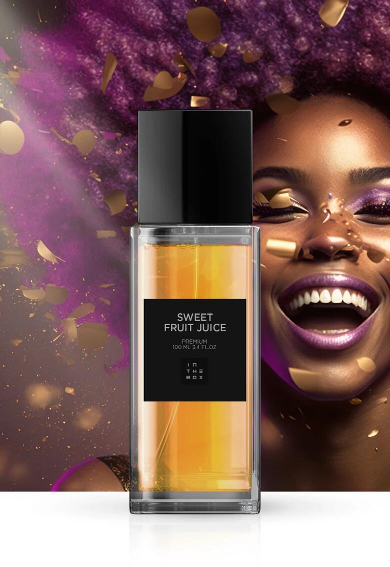 Sweet Fruity Juice podle In The Box je Floral Fruity Gourmand vůně pro ženy. Toto je nová vůně. Sweet Fruity Juice byl/a uveden/a v roce 2024. Vrchní tóny jsou Broskev, Mandarinka a Pomeranč; střední tóny jsouKaramel, Pomerančový květ a Jasmín ; základní tóny jsou Guajakové dřevo, Jantar (ambra), Santalové dřevo a Cedr.