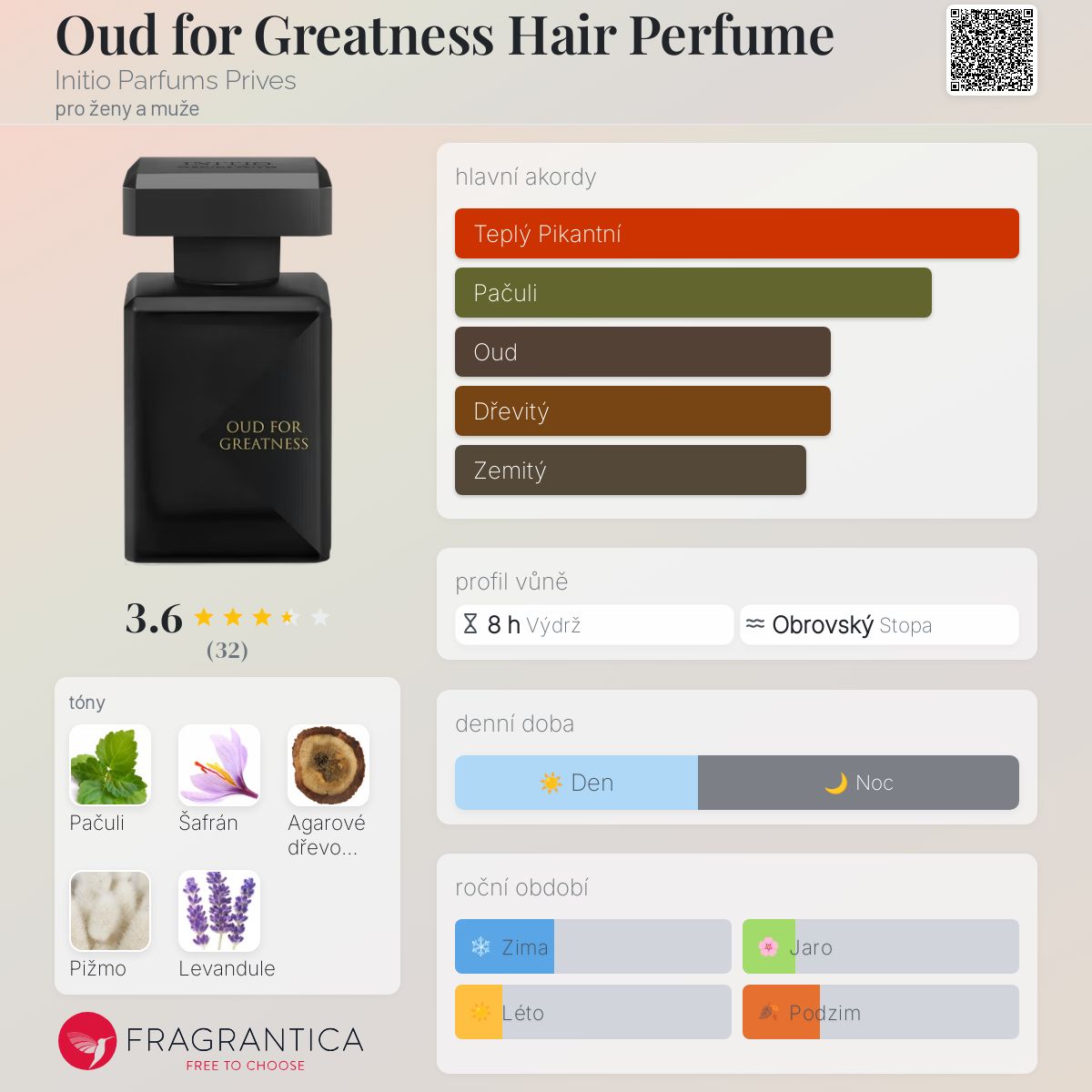 Oud for Greatness Hair Perfume podle Initio Parfums Prives je Orientální Woody vůně pro ženy a muže. Toto je nová vůně. Oud for Greatness Hair Perfume byl/a uveden/a v roce 2024.