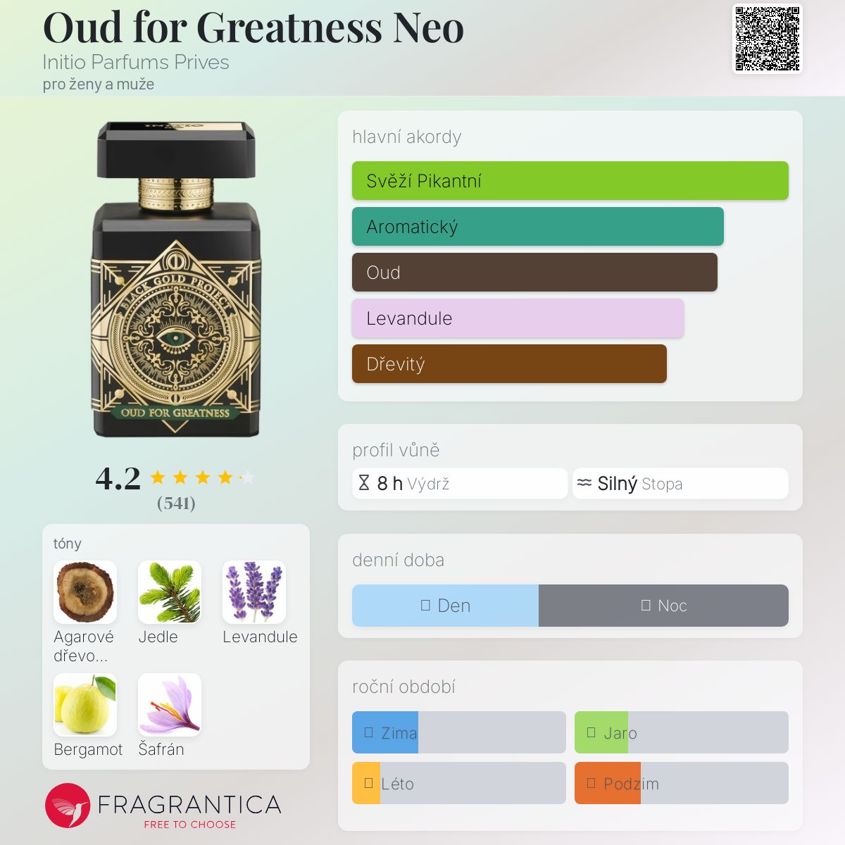 Oud for Greatness Neo podle Initio Parfums Prives je Aromatic Spicy vůně pro ženy a muže. Toto je nová vůně. Oud for Greatness Neo byl/a uveden/a v roce 2024.