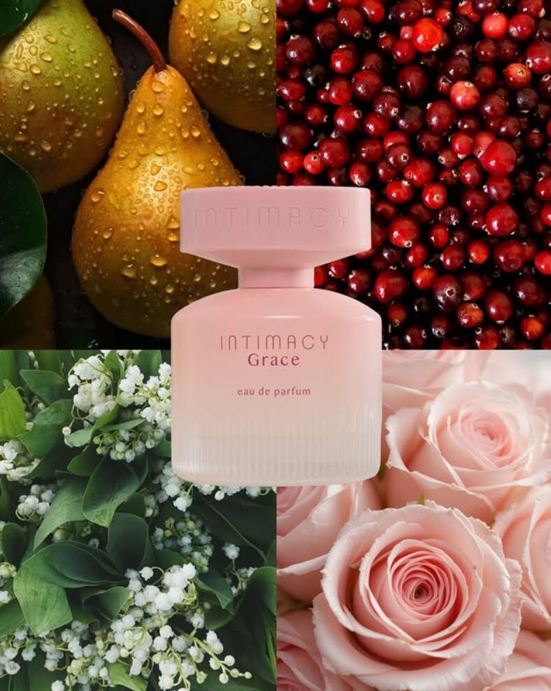 Grace podle Intimacy je Floral Woody Musk vůně pro ženy. Toto je nová vůně. Grace byl/a uveden/a v roce 2025. Vrchní tóny jsou Hruška a Růžový pepř; střední tóny jsouRůže a Konvalinka ; základní tóny jsou Pižmo a Pačuli.