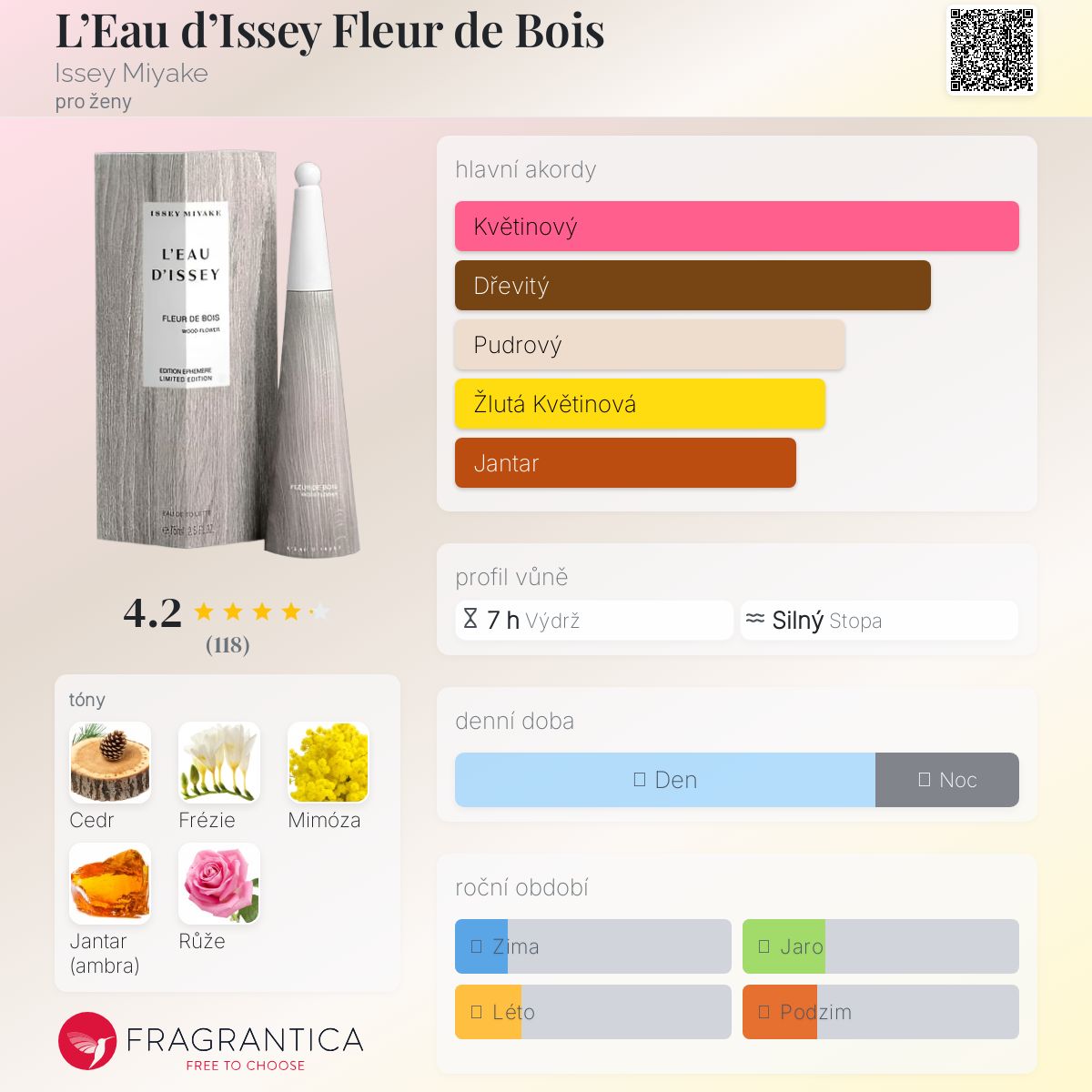 L’Eau d’Issey Fleur de Bois podle Issey Miyake je Floral vůně pro ženy. L’Eau d’Issey Fleur de Bois byl/a uveden/a v roce 2010. "Nosem" za touto vůní je Jacques Cavallier Belletrud.