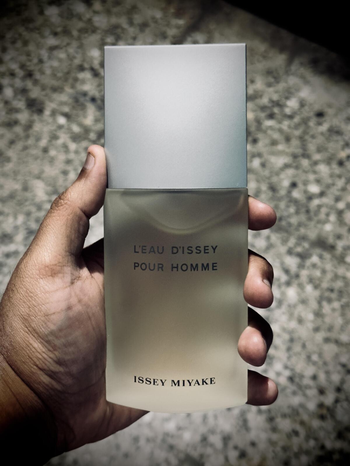 L'Eau d'Issey Pour Homme podle Issey Miyake je Woody Aquatic vůně pro muže. L'Eau d'Issey Pour Homme byl/a uveden/a v roce 1994. "Nosem" za touto vůní je Jacques Cavallier Belletrud. Vrchní tóny jsou Yuzu, Citrón, Bergamot, Citronová verbena, Mandarinka, Cypřiš, Calone, Koriandr, Šalvěj a Estragon; střední tóny jsouModrý lotos, Muškátový oříšek, Konvalinka, Bourbonské geránium , Šafrán, Cejlonská skořice a Rýt ; základní tóny jsou Tahitský vetiver, Pižmo, Cedr, Santalové dřevo, Jantar (ambra) a Tabák.