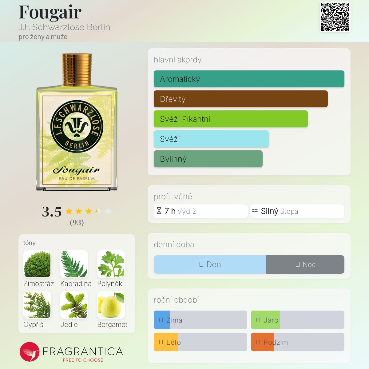 Fougair podle J.F. Schwarzlose Berlin je Aromatic Fougere vůně pro ženy a muže. Fougair byl/a uveden/a v roce 2021. "Nosem" za touto vůní je Véronique Nyberg. Vrchní tóny jsou Kapradina, Bergamot a Růžový pepř; střední tóny jsouZimostráz, Pelyněk a Cypřiš ; základní tóny jsou Jedle balzámová, Jantar (ambra) a Pačuli.