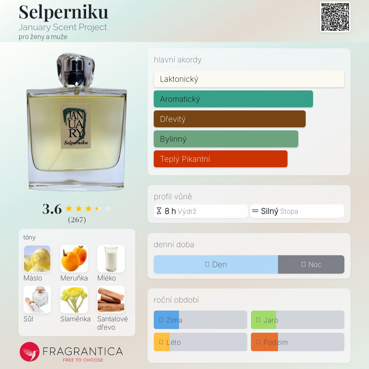 Selperniku podle January Scent Project je Woody Floral Musk vůně pro ženy a muže. Selperniku byl/a uveden/a v roce 2017. "Nosem" za touto vůní je John Biebel. Vrchní tóny jsou Cypřiš, Citrón a Petitgrain; střední tóny jsouMáslo, Meruňka, Slaměnka, Heřmánek, Jalovcové bobulky a Kardamom ; základní tóny jsou Mléko, Sůl, Santalové dřevo a Tabákový list.
