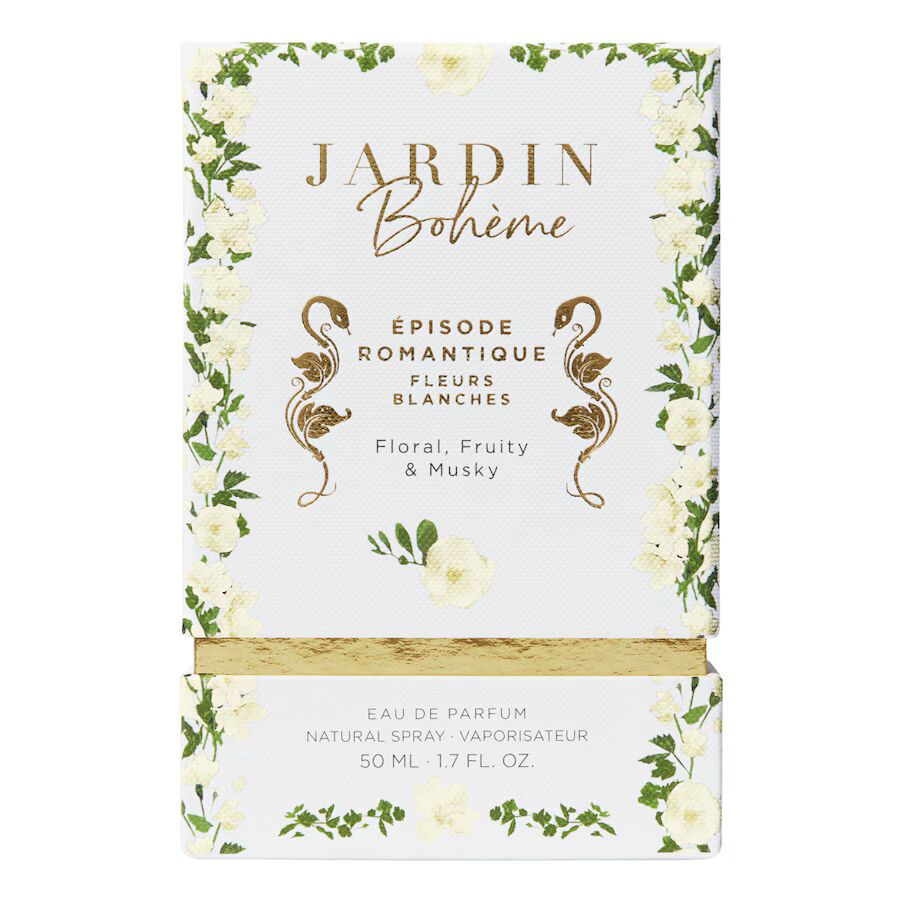 Épisode Romantique Fleurs Blanches podle Jardin Bohème je Floral Woody Musk vůně pro ženy. Toto je nová vůně. Épisode Romantique Fleurs Blanches byl/a uveden/a v roce 2025. Vrchní tóny jsou Tuberóza a Bergamot; střední tóny jsouJasmín, Fialka a Růže ; základní tóny jsou Pižmo, Kosatec a Santalové dřevo.