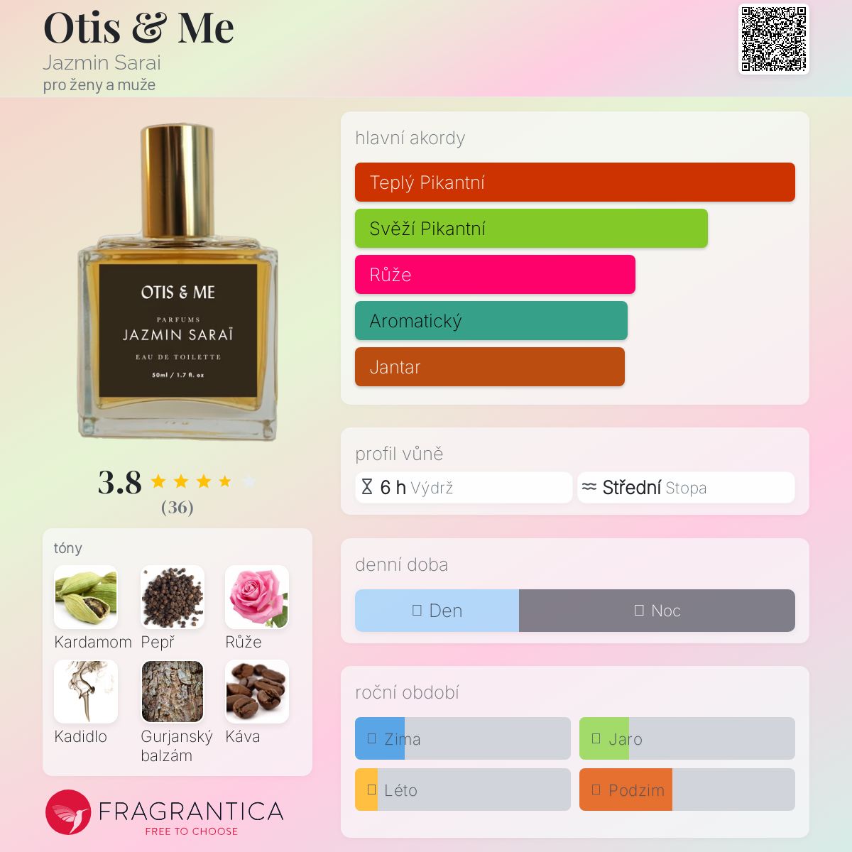 Otis & Me podle Jazmin Sarai je Orientální vůně pro ženy a muže. Otis & Me byl/a uveden/a v roce 2014. "Nosem" za touto vůní je Dana El Masri.