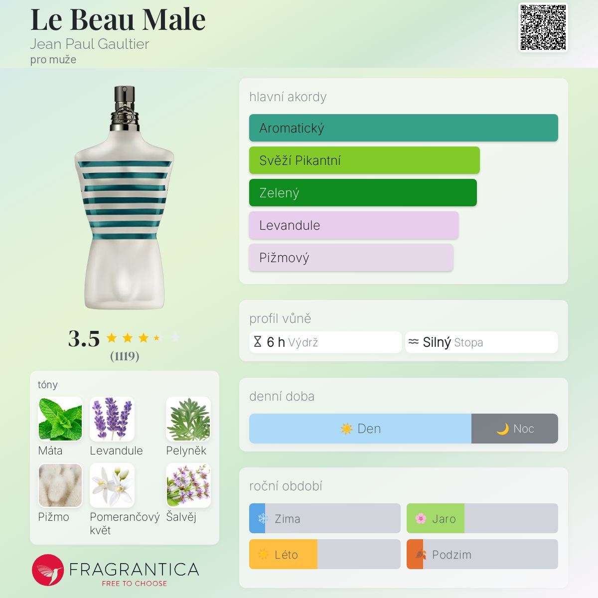 Le Beau Male podle Jean Paul Gaultier je Aromatic Fougere vůně pro muže. Le Beau Male byl/a uveden/a v roce 2013. "Nosem" za touto vůní je Francis Kurkdjian. Vrchní tóny jsou Máta a Pelyněk; střední tóny jsouLevandule, Pomerančový květ a Šalvěj ; základní tón je Pižmo.