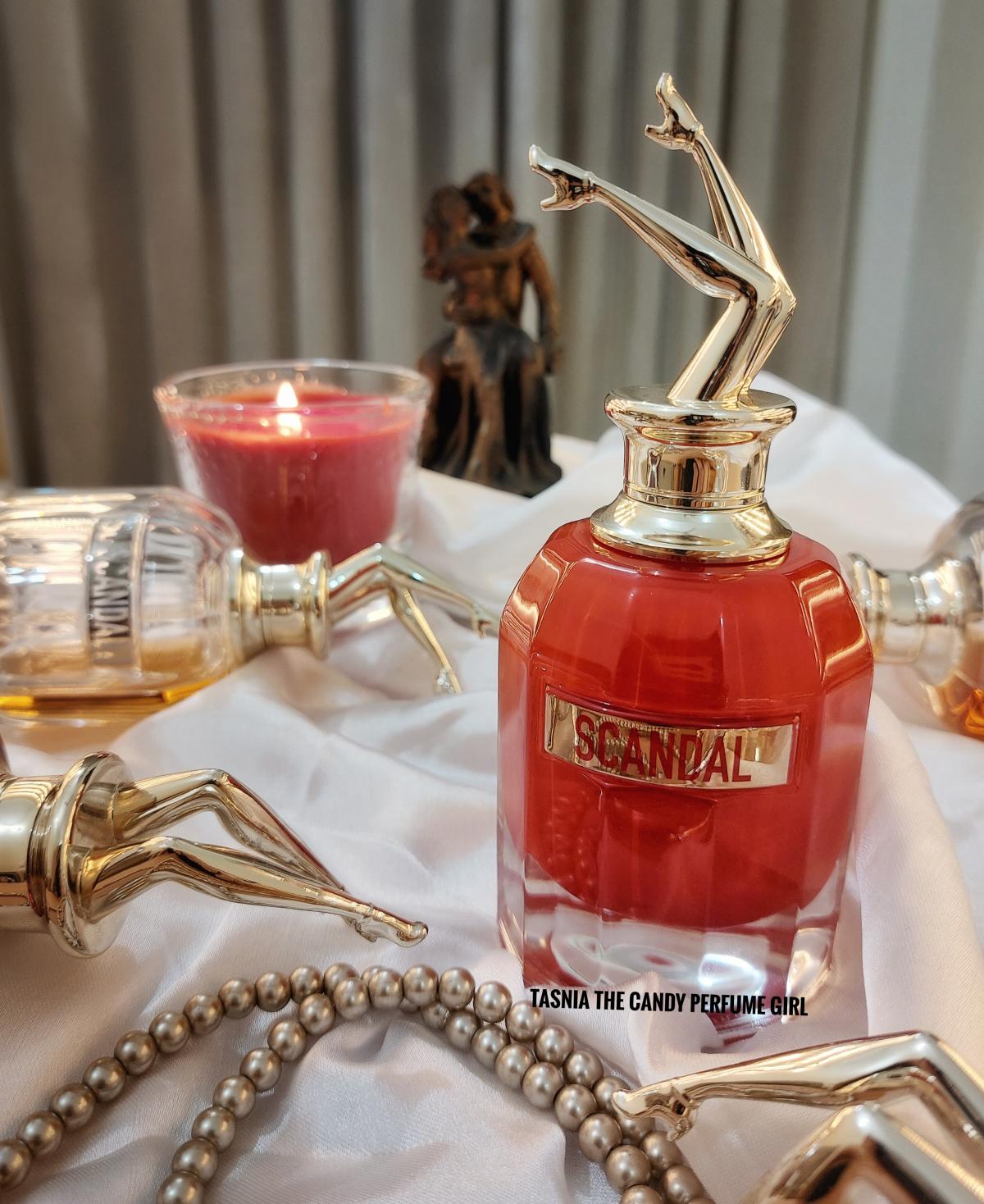Vůně vytvořená ve spolupráci tří nosů: Ane Ayo, Fabrice Pellegrina a Daphné Bugey. Vůně s triumfálními květinovými tóny jasmínu, bílého květinového prince pozdního jara, ponořená do opulentního gurmánského triumfu slaného karamelu zabaleného do sladkých, uklidňujících tónů vanilky. Úderná, hyperženská vůně, kterou si někteří mylně spojují s vůní Hipnotic Poison od Diora... možná právě kvůli triumfálním tónům jasmínu a vanilky, které se nerušeně vynořují z celé směsi. Scandal Le Parfum by Jean Paul Gaultier ve svém časovém vývoji přináší nečekané balzamické a zahalující tóny mastku. Vůně doporučovaná ženám, které se rády připomínají gurmánskou sladkostí.