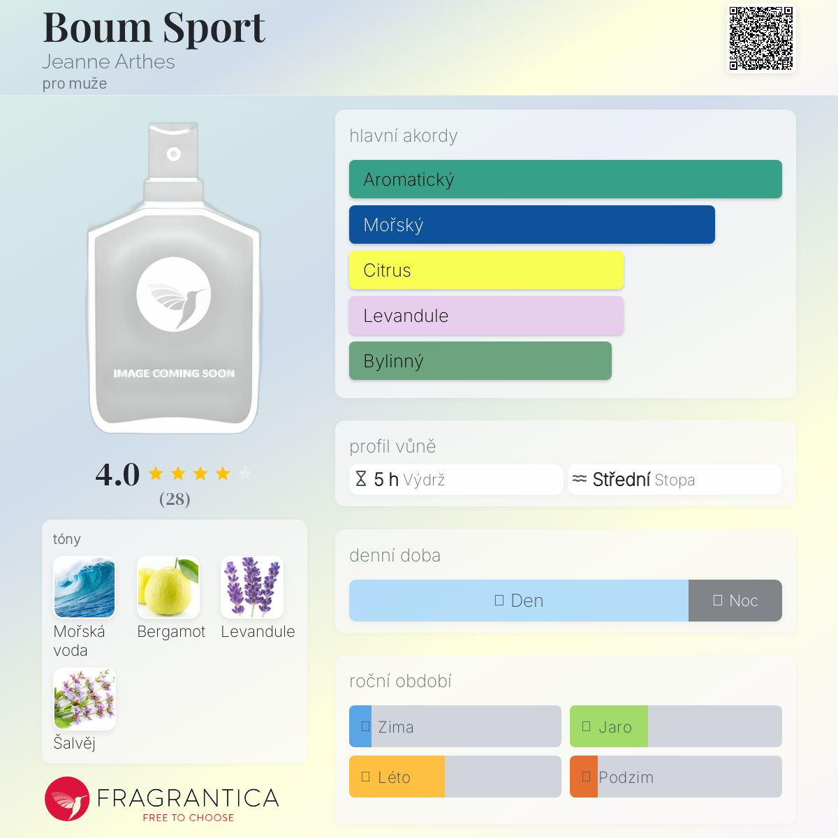 Boum Sport podle Jeanne Arthes je Citrus Aromatic vůně pro muže. Boum Sport byl/a uveden/a v roce 2015.