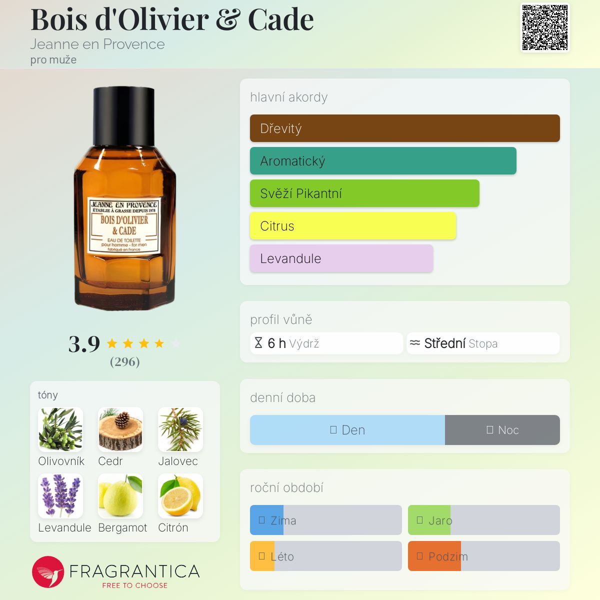 Bois d'Olivier & Cade podle Jeanne en Provence je Woody Aromatic vůně pro muže. Bois d'Olivier & Cade byl/a uveden/a v roce 2012.