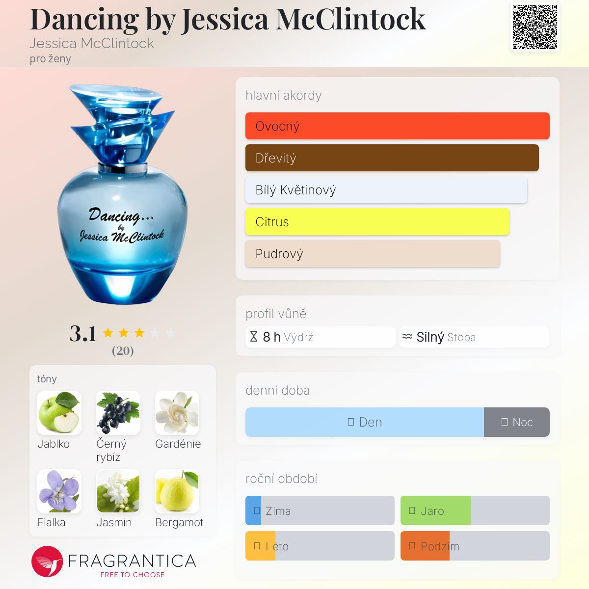 Dancing by Jessica McClintock podle Jessica McClintock je Floral vůně pro ženy. Dancing by Jessica McClintock byl/a uveden/a v roce 2013. Vrchní tóny jsou Jablko, Černý rybíz, Bergamot a Citrón; střední tóny jsouGardénie, Fialka, Jasmín a Kosatec ; základní tóny jsou Cedr, Santalové dřevo a Jantar (ambra).