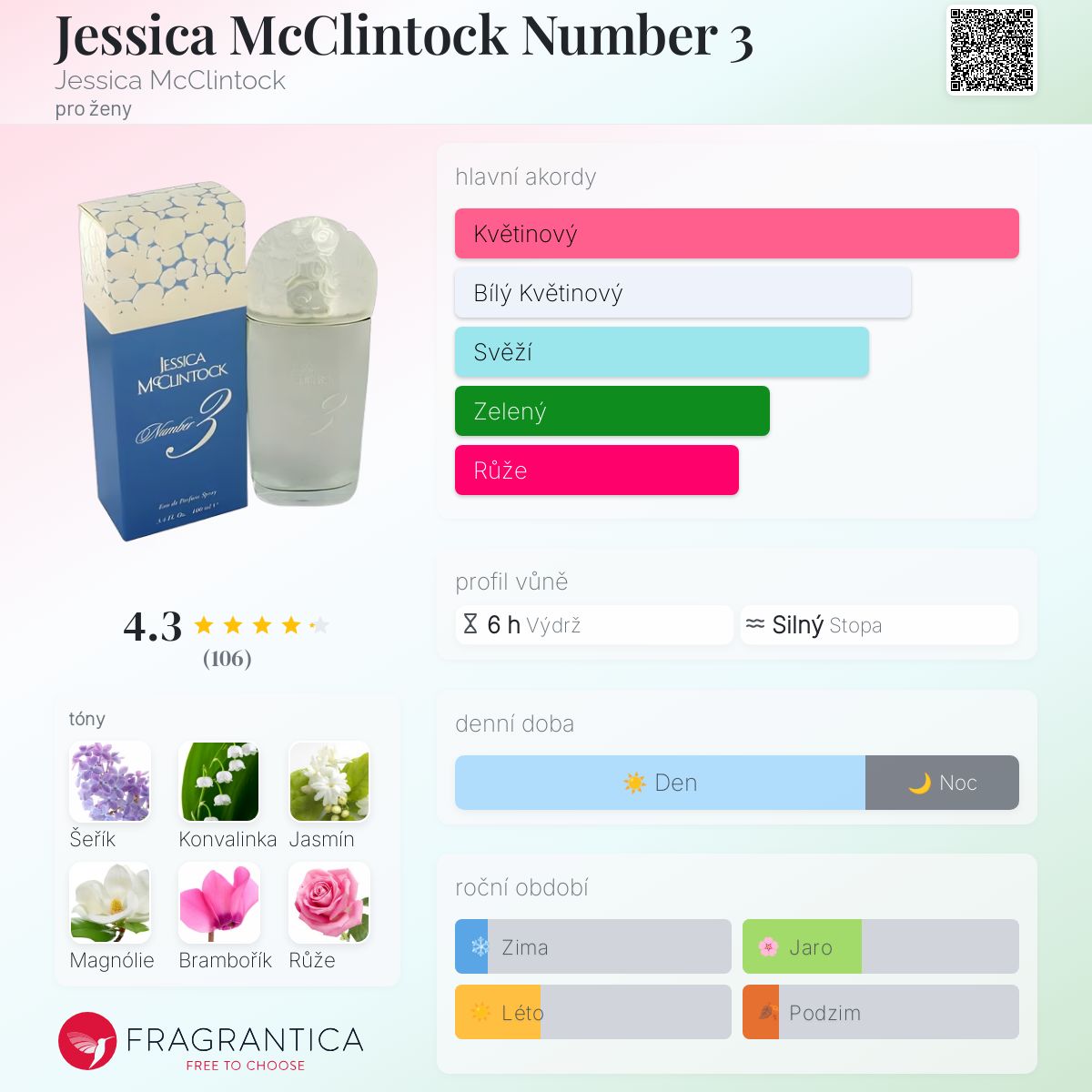 Jessica McClintock Number 3 podle Jessica McClintock je Floral vůně pro ženy. Jessica McClintock Number 3 byl/a uveden/a v roce 2001.