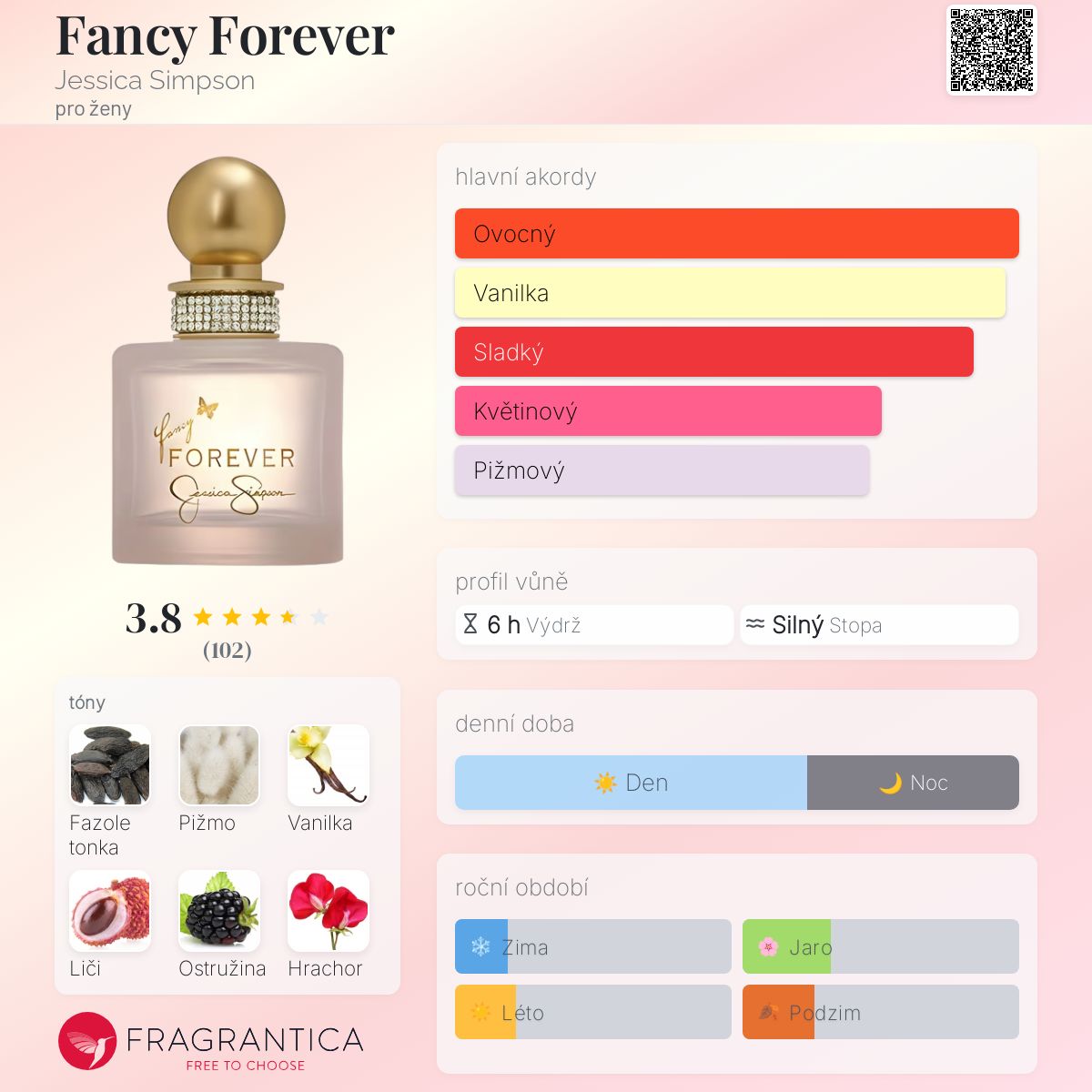 Fancy Forever podle Jessica Simpson je Floral Fruity vůně pro ženy. Fancy Forever byl/a uveden/a v roce 2020. Vrchní tóny jsou Liči, Meruňka a Mandarinka; střední tóny jsouOstružina, Hrachor a Magnólie ; základní tóny jsou Fazole tonka, Pižmo a Vanilka.