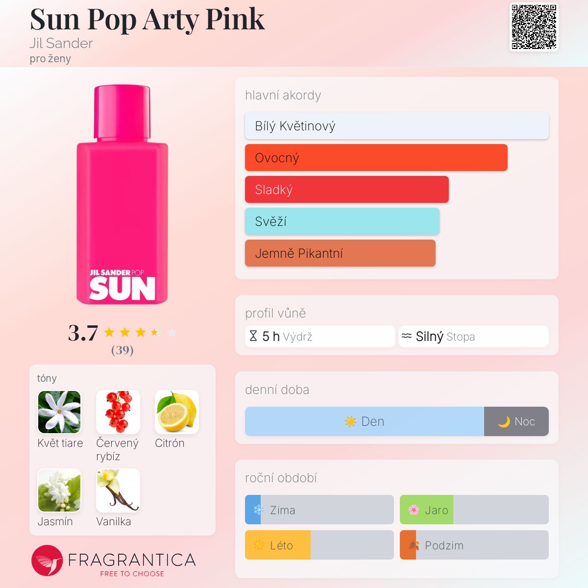 Sun Pop Arty Pink podle Jil Sander je Orientální Floral vůně pro ženy. Sun Pop Arty Pink byl/a uveden/a v roce 2017. Vrchní tóny jsou Červený rybíz a Citrón; střední tóny jsouKvět tiare a Jasmín ; základní tón je Vanilka.
