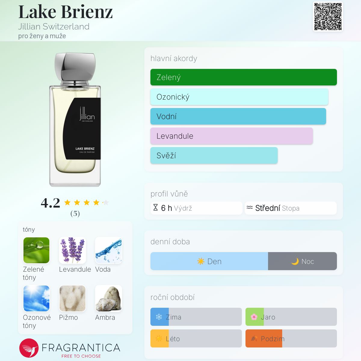 Lake Brienz podle Jillian Switzerland je vůně pro ženy a muže. Lake Brienz byl/a uveden/a v roce 2024. Vrchní tóny jsou Zelené tóny, Levandule, Bergamot a Meloun; střední tóny jsouVodnaté tóny, Ozonové tóny a Růže ; základní tóny jsou Pižmo, Ambra, Pačuli a Cedr.