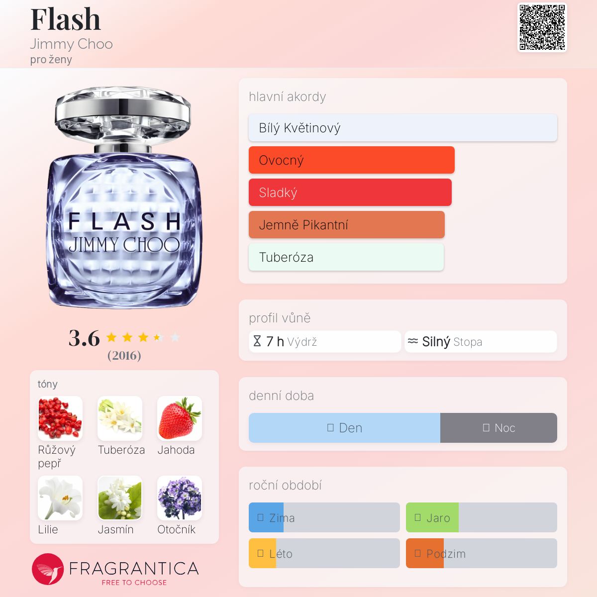 Flash podle Jimmy Choo je Floral vůně pro ženy. Flash byl/a uveden/a v roce 2013. "Nosem" za touto vůní je Christine Nagel. Vrchní tóny jsou Růžový pepř, Velká jahoda a Mandarinka; střední tóny jsouTuberóza, Bílá lilie a Jasmín ; základní tóny jsou Otočník a Bílé dřevo.