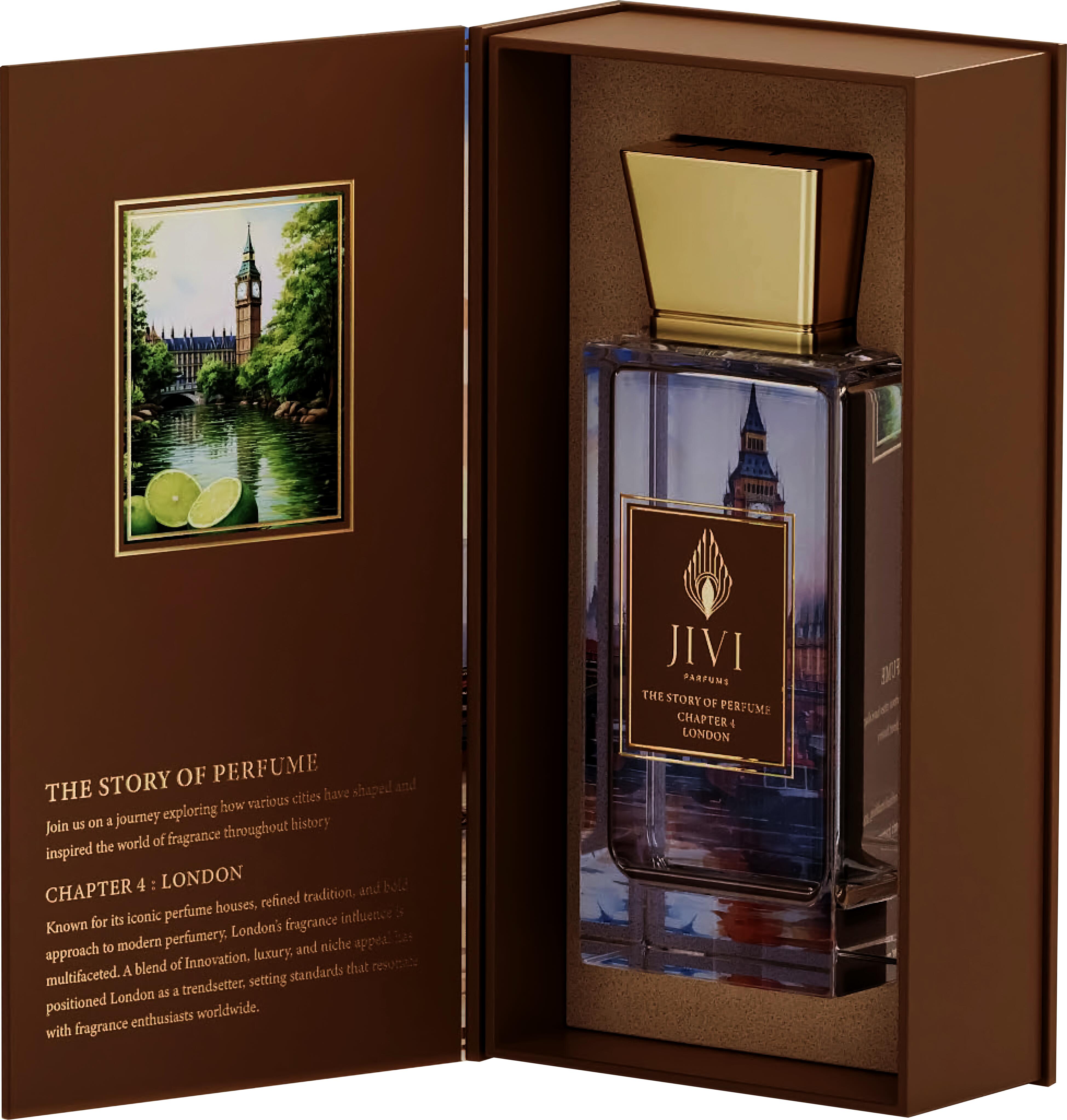 Story of Perfume Chapter 4: London podle Jivi Parfums je Aromatic Fougere vůně pro ženy a muže. Toto je nová vůně. Story of Perfume Chapter 4: London byl/a uveden/a v roce 2025. Vrchní tóny jsou Růžový pepř, Mandarinka a Hruška; střední tóny jsouCreamy notes, Levandule a Jasmín ; základní tóny jsou Ambra, Vanilka a Pižmo.