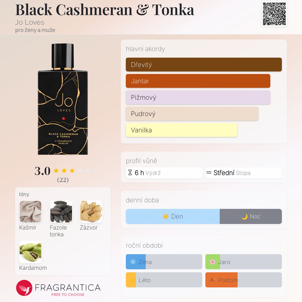 Black Cashmeran & Tonka podle Jo Loves je vůně pro ženy a muže. Toto je nová vůně. Black Cashmeran & Tonka byl/a uveden/a v roce 2024. "Nosem" za touto vůní je Jo Malone.