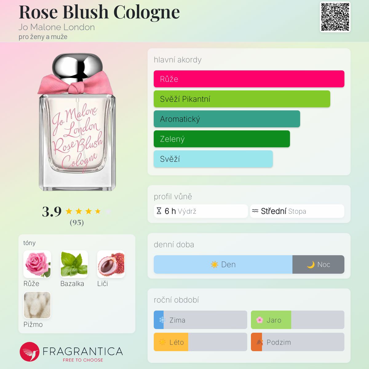 Rose Blush Cologne podle Jo Malone London je Floral vůně pro ženy a muže. Rose Blush Cologne byl/a uveden/a v roce 2022. Vrchní tóny jsou Bazalka a Liči; střední tón jeRůžová růže ; základní tón je Bílé pižmo.
