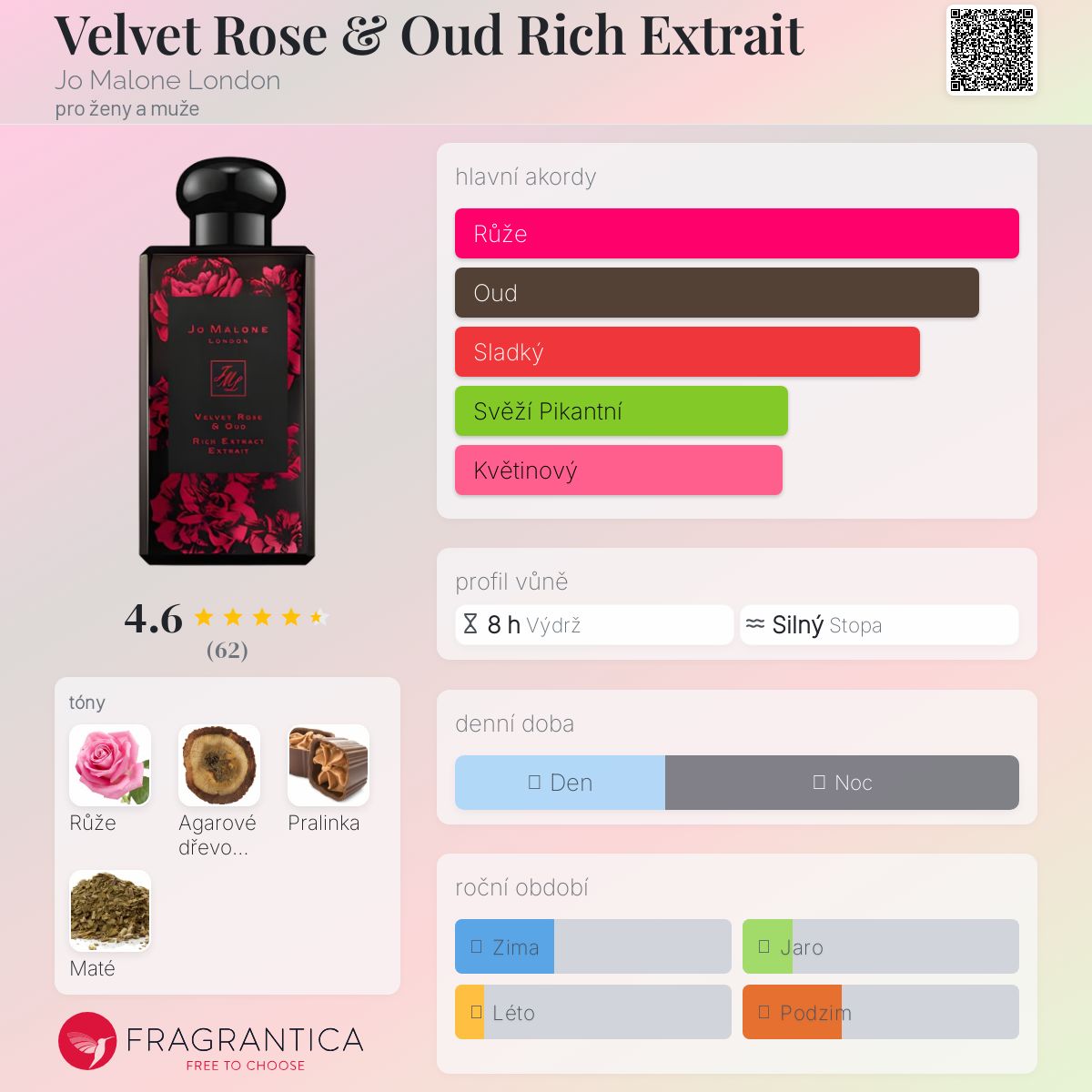 Velvet Rose & Oud Rich Extrait podle Jo Malone London je Orientální Floral vůně pro ženy a muže. Velvet Rose & Oud Rich Extrait byl/a uveden/a v roce 2017.