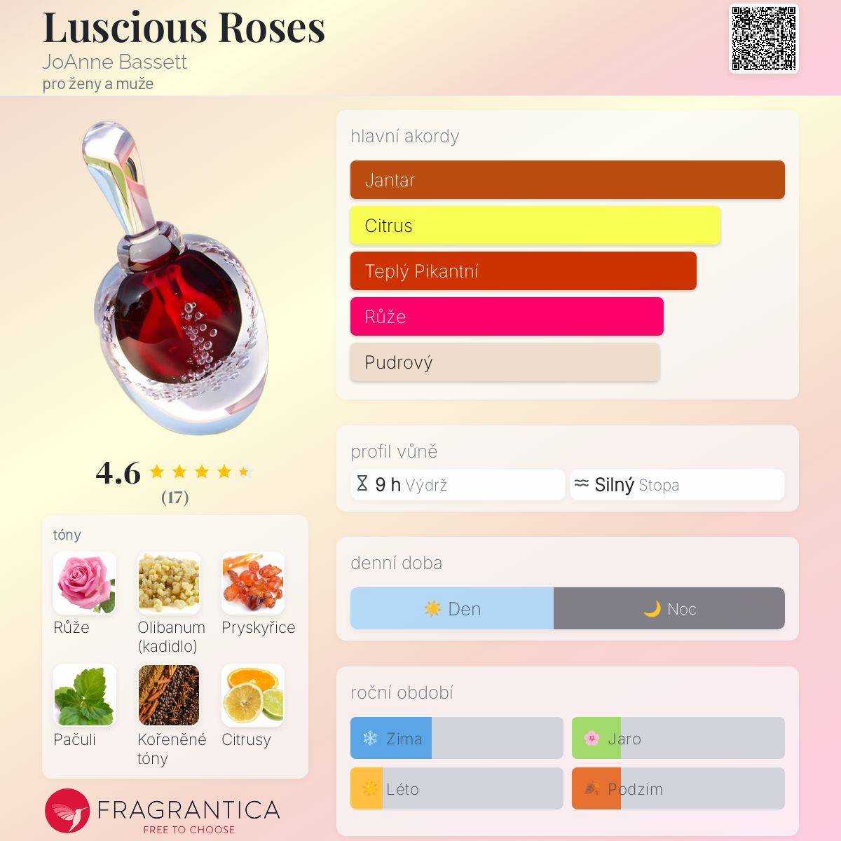 Luscious Roses podle JoAnne Bassett je Floral vůně pro ženy a muže. Luscious Roses byl/a uveden/a v roce 2011. "Nosem" za touto vůní je JoAnne Bassett.