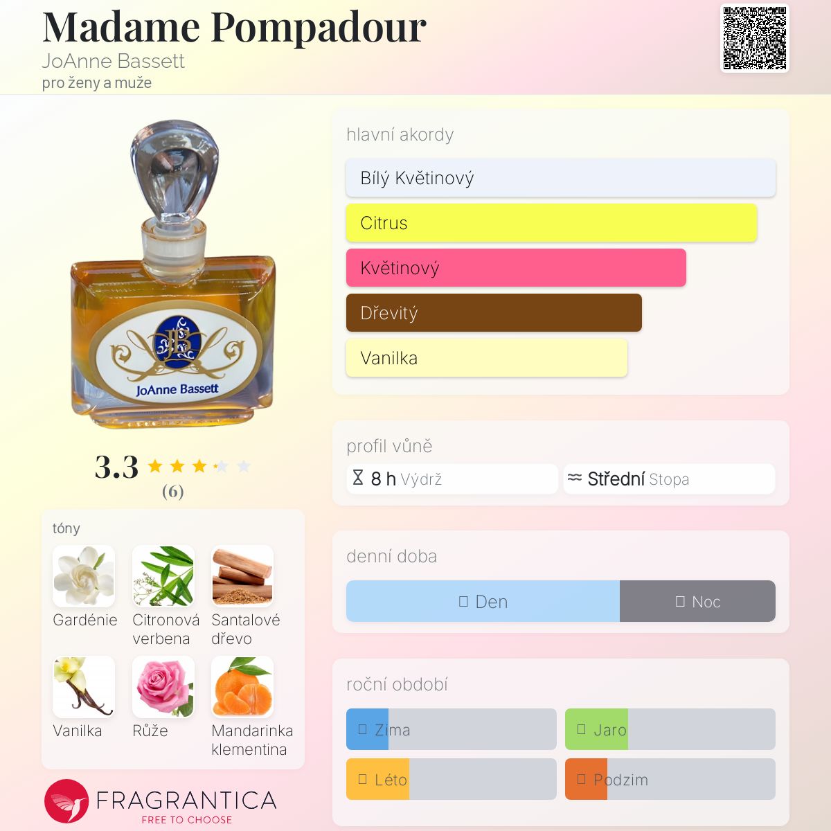 Madame Pompadour podle JoAnne Bassett je Floral vůně pro ženy a muže. Madame Pompadour byl/a uveden/a v roce 2006. "Nosem" za touto vůní je JoAnne Bassett.