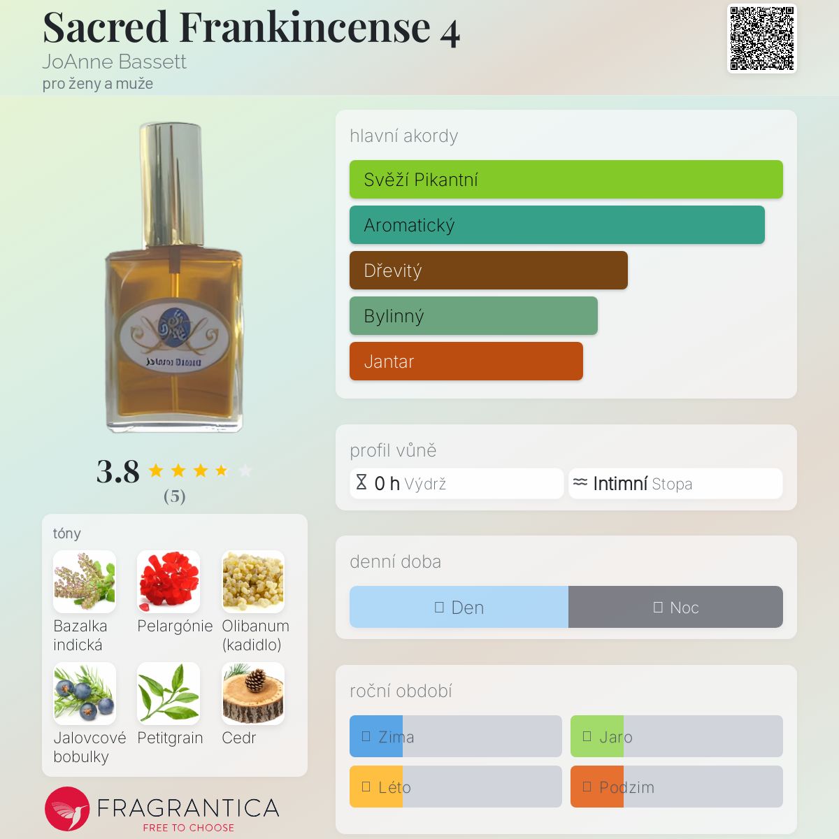 Sacred Frankincense 4 podle JoAnne Bassett je Orientální vůně pro ženy a muže. Sacred Frankincense 4 byl/a uveden/a v roce 2014. "Nosem" za touto vůní je JoAnne Bassett.