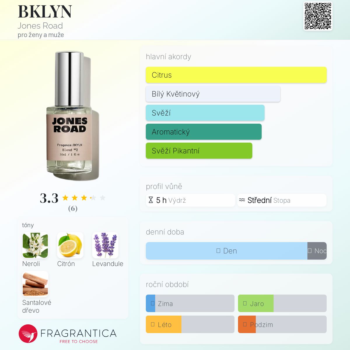 BKLYN podle Jones Road je Citrus Aromatic vůně pro ženy a muže. Toto je nová vůně. BKLYN byl/a uveden/a v roce 2025. Vrchní tón je Citrón ; střední tóny jsouNeroli a Levandule ; základní tón je Santalové dřevo.