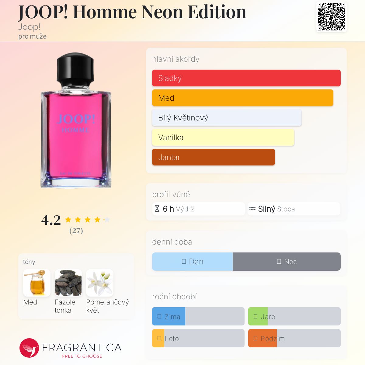 JOOP! Homme Neon Edition podle Joop! je vůně pro muže. Vrchní tón je Pomerančový květ ; střední tón jeMed ; základní tón je Fazole tonka.