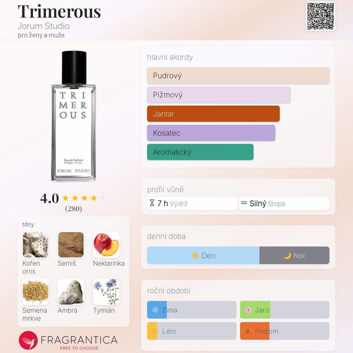 Trimerous podle Jorum Studio je vůně pro ženy a muže. Trimerous byl/a uveden/a v roce 2019. "Nosem" za touto vůní je Euan McCall.