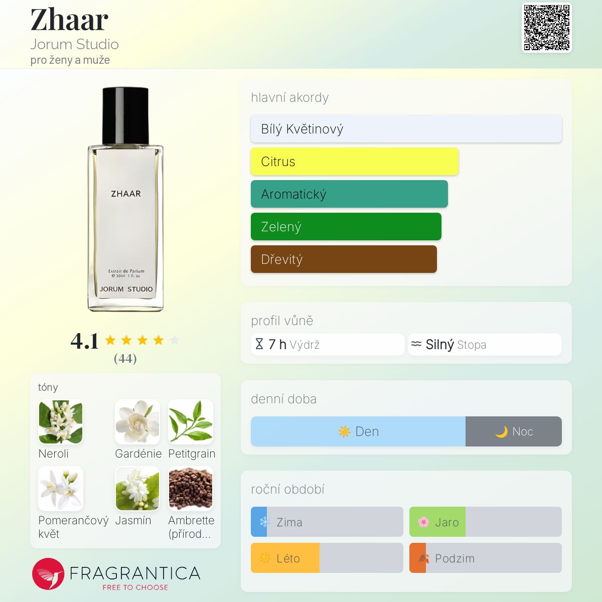 Zhaar podle Jorum Studio je Floral vůně pro ženy a muže. Toto je nová vůně. Zhaar byl/a uveden/a v roce 2024. "Nosem" za touto vůní je Euan McCall.
