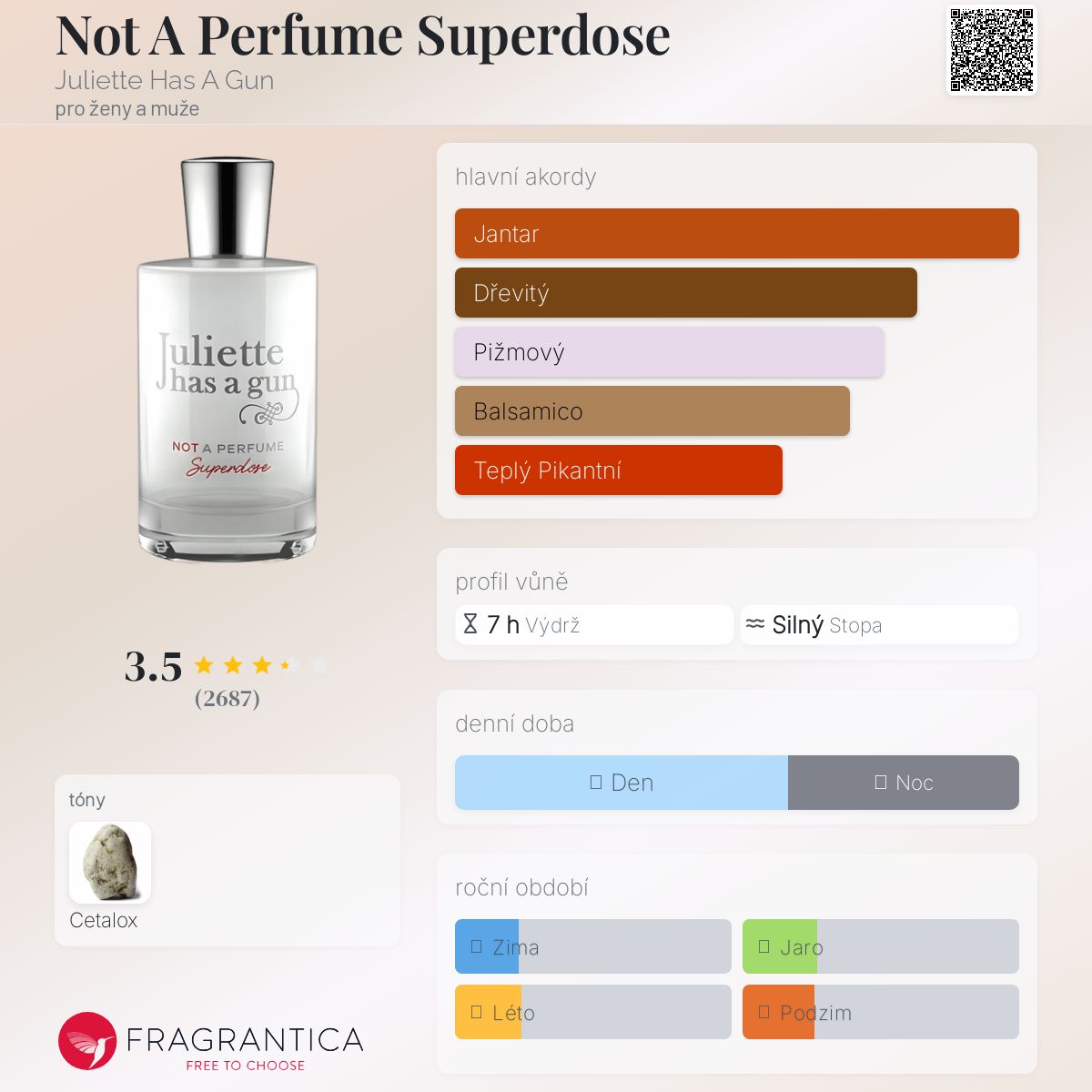 Not A Perfume Superdose podle Juliette Has A Gun je Woody Aromatic vůně pro ženy a muže. Not A Perfume Superdose byl/a uveden/a v roce 2019.