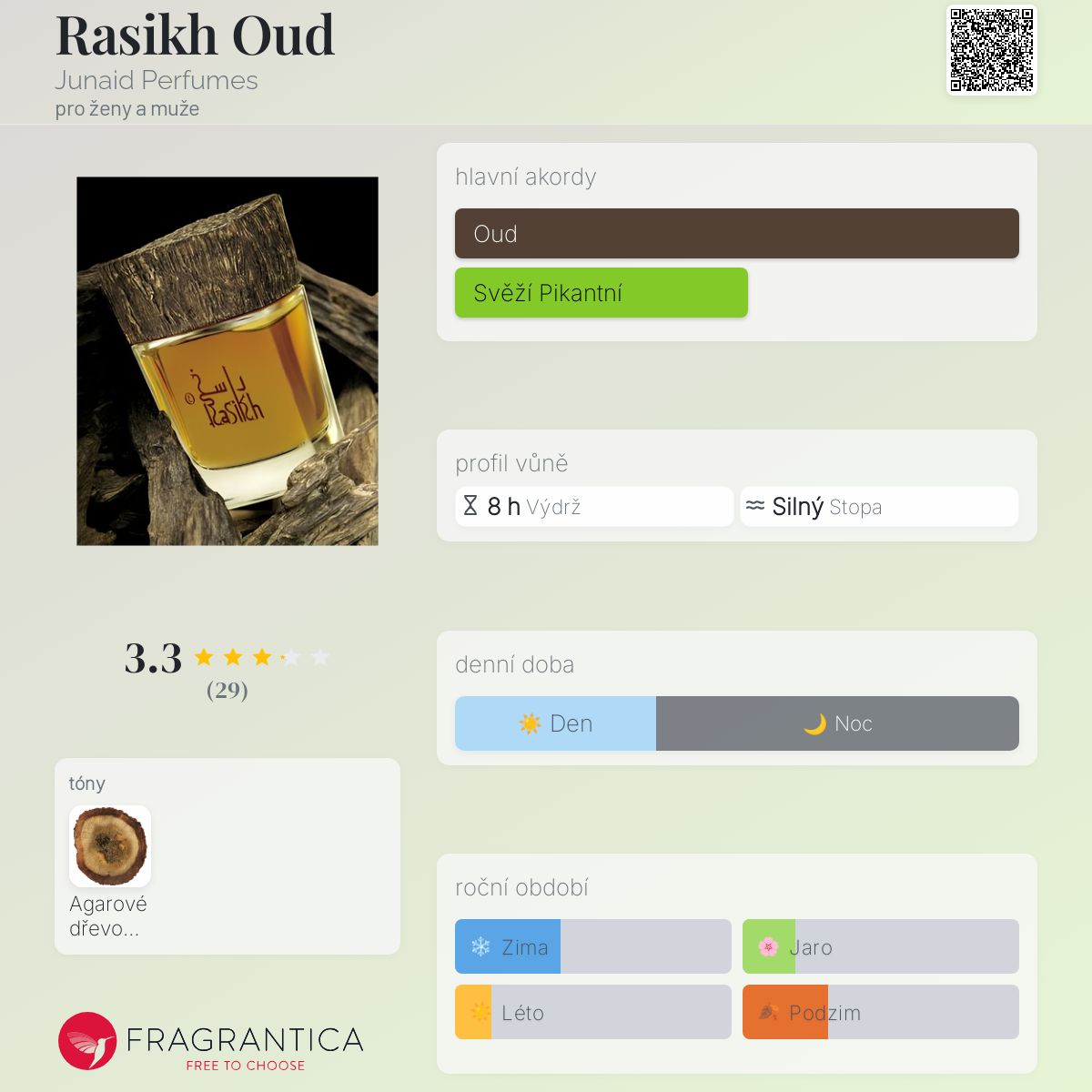 Rasikh Oud podle Junaid Perfumes je Orientální Woody vůně pro ženy a muže.