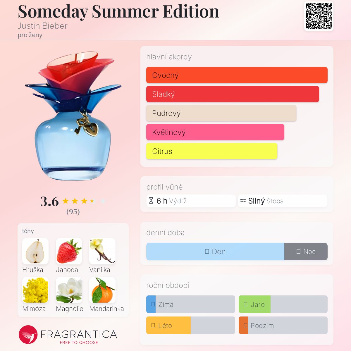 Someday Summer Edition podle Justin Bieber je Floral Fruity vůně pro ženy. Someday Summer Edition byl/a uveden/a v roce 2013. Vrchní tóny jsou Hruška, Magnólie a Mandarinka; střední tóny jsouVelká jahoda a Mimóza ; základní tóny jsou Vanilka, Santalové dřevo a Pižmo.