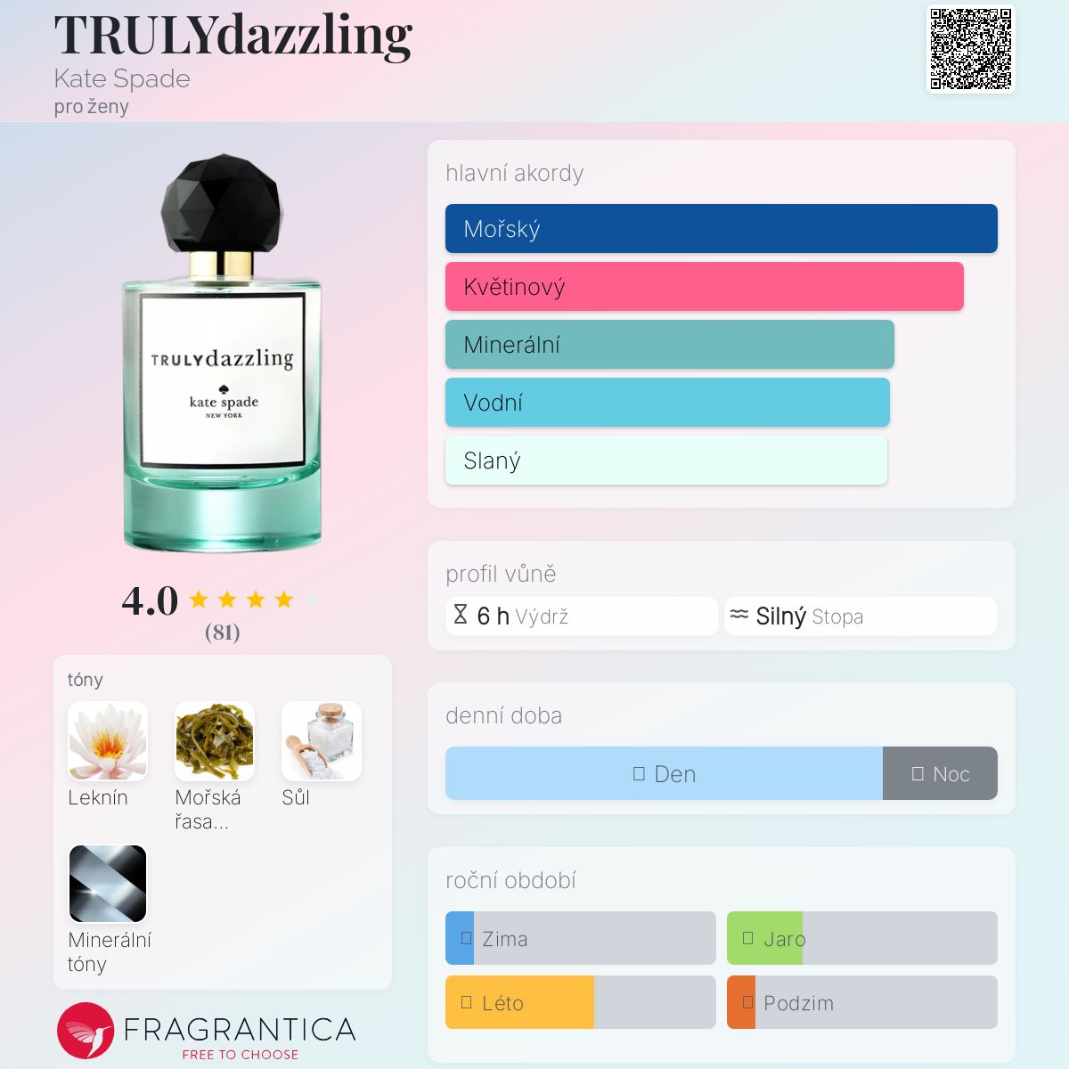 TRULYdazzling podle Kate Spade je Aromatic vůně pro ženy. TRULYdazzling byl/a uveden/a v roce 2017. Vrchní tón je Leknín ; střední tón jeMořská řasa kombu ; základní tóny jsou Sůl a Minerální tóny.