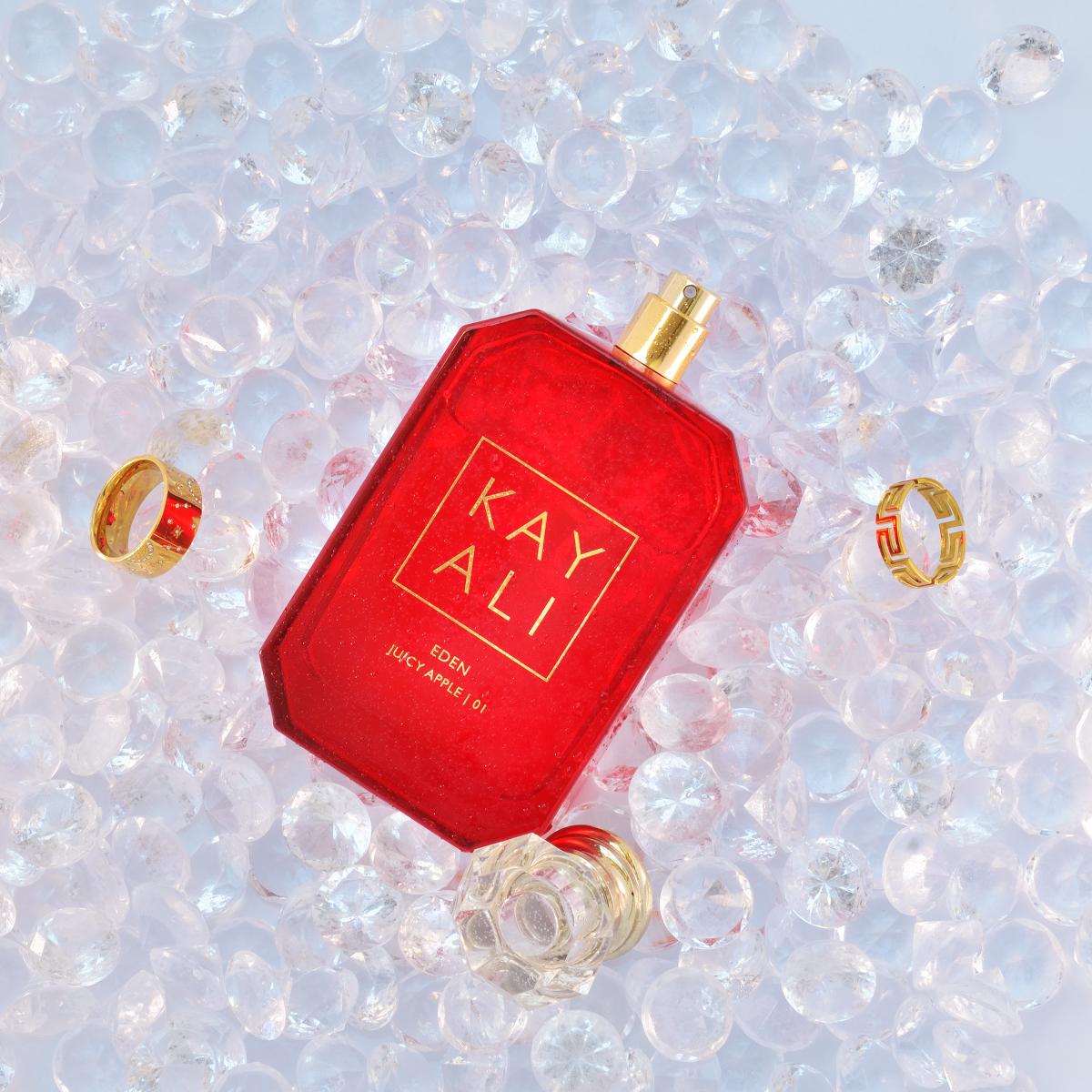 Vezměte libovolné ovocné ovoce Escada, dejte ho do červené lahve a nastavte poměrně vysokou cenu... výsledek? Tahle Kayali Eden Apple Juicy 01. Ta 01... dala bych jí ještě pár otáček.