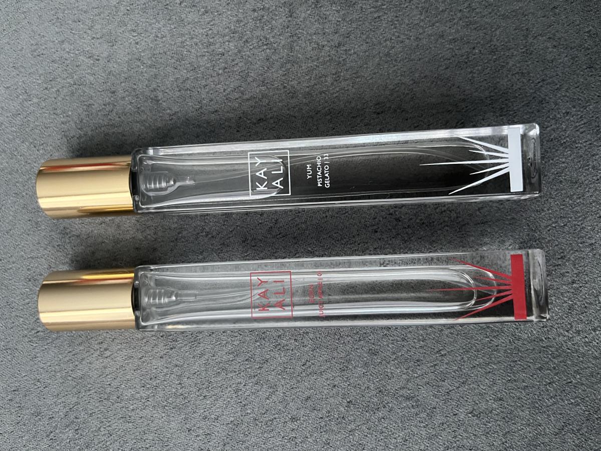 Od mého prvního dojmu, který jsem napsal níže, uplynulo 6 hodin, takže je to pro mě dost blízko k 8. Teď už rozhodně vidím srovnání s Burberry Her. Má stejnou šťavnatost jako Marc Jacob's Perfect, ale bez kyselosti z rebarbory. Přišlo mi, že je dost lineární. Kolem třetí hodiny intenzita docela ochabla. Dva střiky jsou ale víc než dost. Moje kolegyně ji ucítila hned, jak otevřela krabičku. Pokud jste někdy nosili něco ovocného od Victoria's Secret nebo BBW, určitě jste už tuhle vůni cítili. Také mi trochu připomíná řadu Pink With a Splash od VS někdy v letech 2009-2010. Je to stále velmi krásná vůně a velmi vhodný nový přírůstek do řady Kayali. Pro mě by tato vůně byla absolutní láskou, kdyby měla nějaký krémový aspekt. Třeba šlehačkový nebo mléčný tón. A i když je velmi sladká, přála bych si, aby cukr v základním tónu byl výraznější.