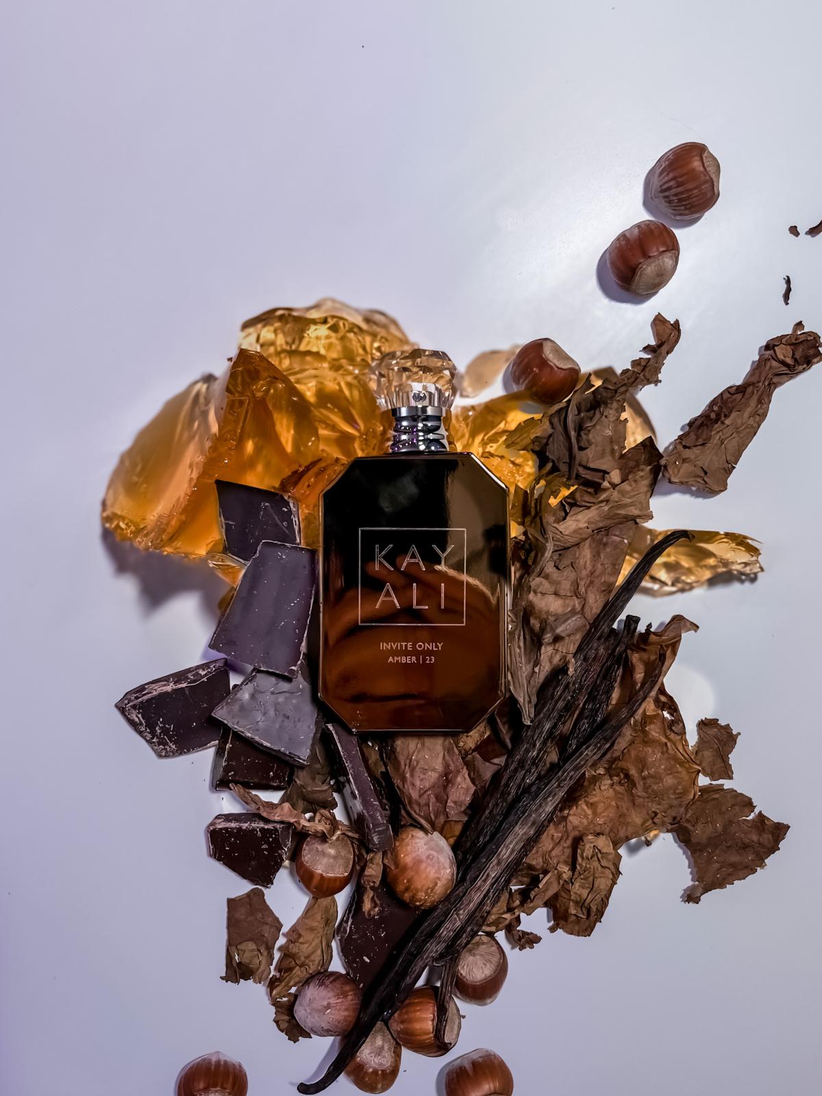 Invite Only Amber | 23 podle Kayali Fragrances je Orientální Spicy vůně pro ženy a muže. Invite Only Amber | 23 byl/a uveden/a v roce 2021. Invite Only Amber | 23 byl/a vytvořen/a Ilias Ermenidis a Firmenich. Vrchní tóny jsou Tabákový list, Kyselá třešeň, Med, Čokoláda a Lískový oříšek; střední tóny jsouCejlonská skořice, Květná růže, Damašská růže a Citrusový list ; základní tóny jsou Jantar (ambra), Agarové dřevo (oud), Vanilka, Benzoin, Santalové dřevo, Pačuli, Pižmo a Cypriolový olej.