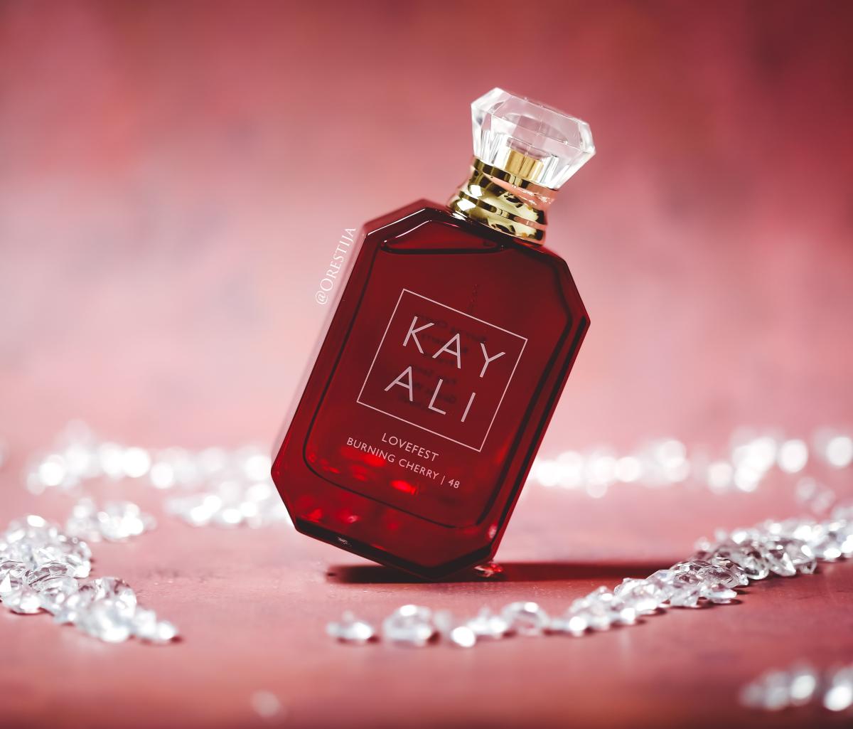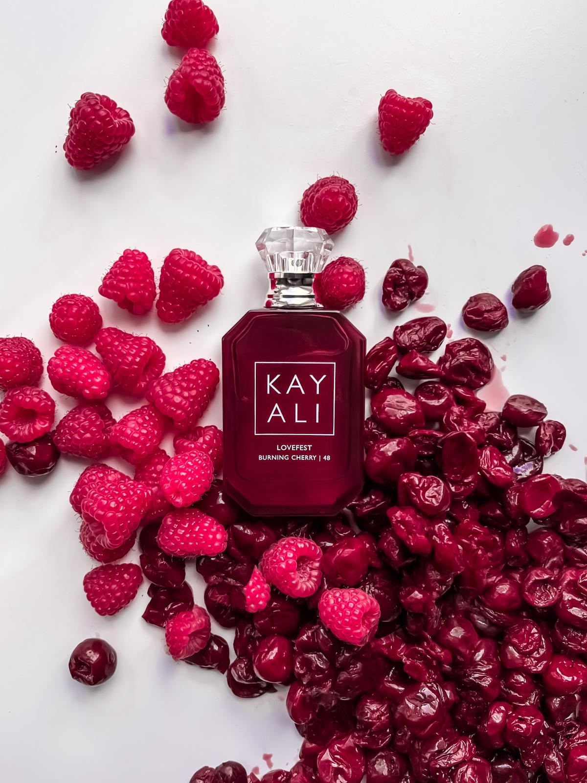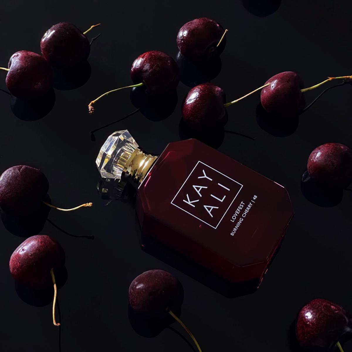 Lovefest Burning Cherry | 48 Eau de Parfum podle Kayali Fragrances je Orientální Woody vůně pro ženy a muže. Lovefest Burning Cherry | 48 Eau de Parfum byl/a uveden/a v roce 2022. Lovefest Burning Cherry | 48 Eau de Parfum byl/a vytvořen/a Gabriela Chelariu a Philippine Courtière. Vrchní tóny jsou Hořící třešeň, Maliny a Bergamot; střední tóny jsouPralinka, Otočník, Damašská růže a Jasmín Sambac ; základní tóny jsou Březule vonná, Fazole tonka, Guajakové dřevo, Peruánský balzám, Ambrettolide, Pačuli a Haitský vetiver.