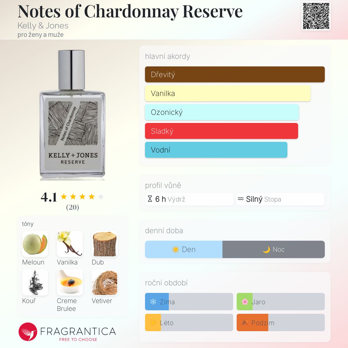 Notes of Chardonnay Reserve podle Kelly & Jones je Orientální Vanilla vůně pro ženy a muže. Notes of Chardonnay Reserve byl/a uveden/a v roce 2016. "Nosem" za touto vůní je Kelly Jones.