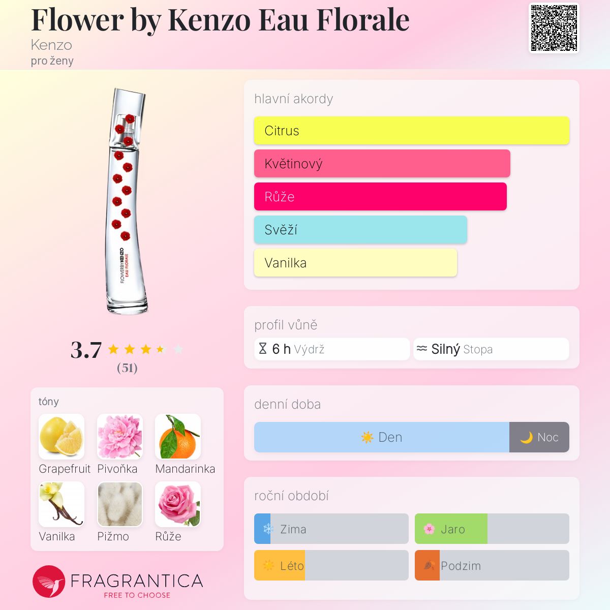 Flower by Kenzo Eau Florale podle Kenzo je Floral vůně pro ženy. Flower by Kenzo Eau Florale byl/a uveden/a v roce 2016. "Nosem" za touto vůní je Alberto Morillas. Vrchní tóny jsou Růžový grapefruit a Mandarinka; střední tóny jsouPivoňka a Bulharská růže ; základní tóny jsou Vanilka a Bílé pižmo.