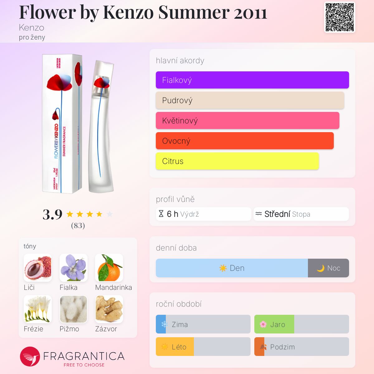Flower by Kenzo Summer 2011 podle Kenzo je Floral Fruity vůně pro ženy. Flower by Kenzo Summer 2011 byl/a uveden/a v roce 2011. "Nosem" za touto vůní je Alberto Morillas. Vrchní tóny jsou Liči, Mandarinka a Zázvor; střední tóny jsouFialka a Frézie ; základní tón je Pižmo.