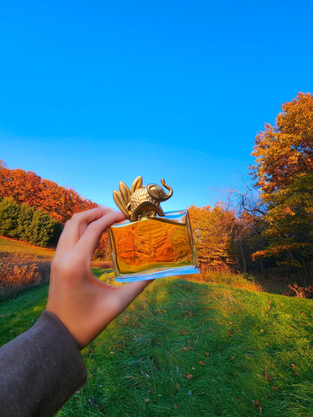 Jeho krása na mé kůži spočívá v hutnosti a zářivosti, kterou má, ve chvílích, kdy jsem tento vzorek Rebecavpf nosila, jsem se obvykle cítila otupělá a uvolněná. Člověk má pocit, že jede na krásném indickém slonovi a ten ho odveze, kam se mu zachce, zavře oči a dá mu křídla ke snění, nádhernější už to být nemůže. Stal se orientálním kořeněným parfémem, který mohu nosit nejlépe. Jeden ze zázraků parfumerie, pokud jde o koření, to je Kenzo Elephant, nejexotičtější cesta relaxace, stává se téměř transcendentálním parfémem, ten si nenechá nikdo vzít. Překračuje rámec toho, co se od něj očekává, můžete ho nosit při každé příležitosti ve správné dávce, protože vás nikdy nemůže zklamat, je to prostě mistrovský parfém, ať už je kdekoli. Tajemstvím tohoto elixíru je zamilovat si ho, pokud si ho zamilujete, nemůžete bez něj být.