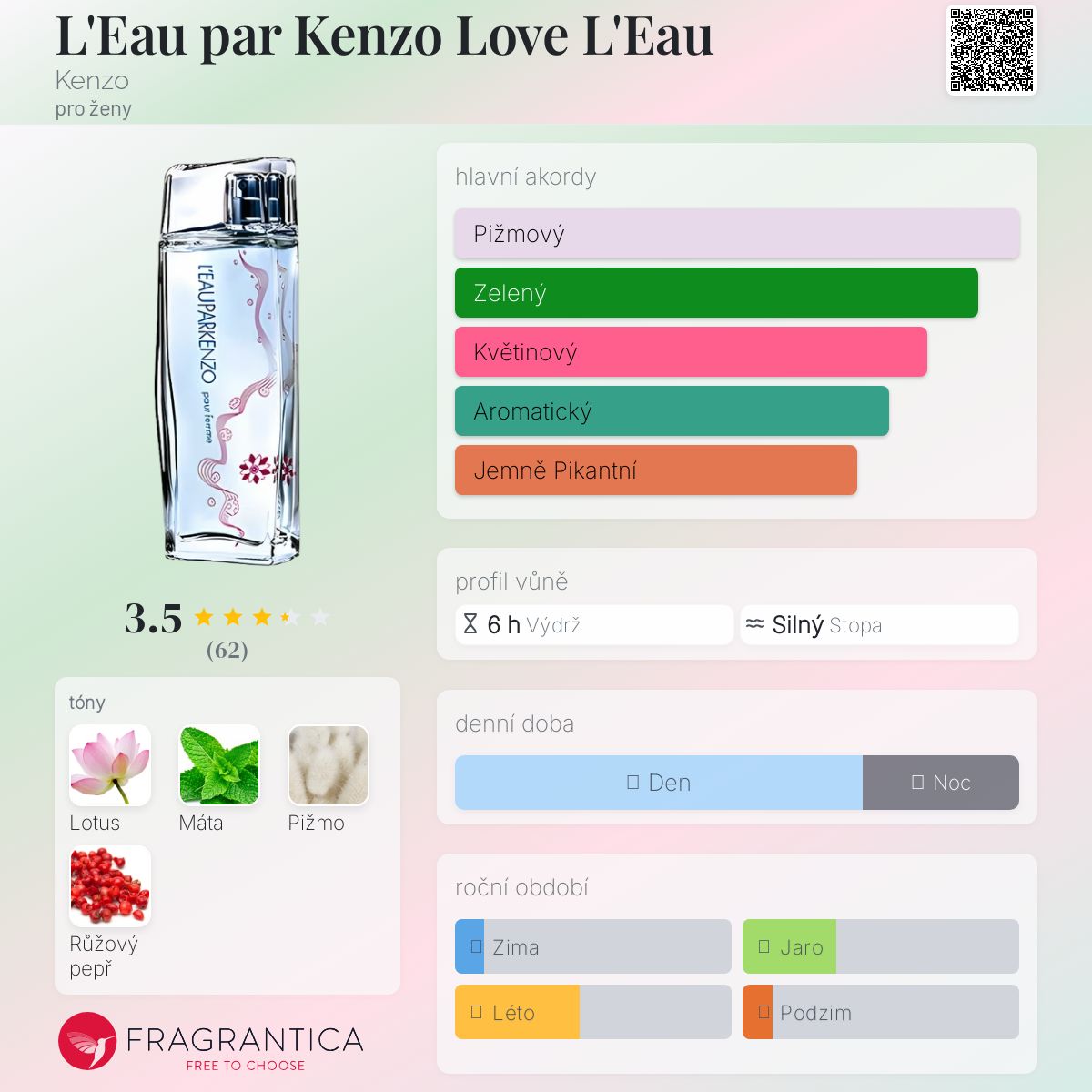 L'Eau par Kenzo Love L'Eau podle Kenzo je Floral vůně pro ženy. L'Eau par Kenzo Love L'Eau byl/a uveden/a v roce 2006. "Nosem" za touto vůní je Jacques Cavallier Belletrud.