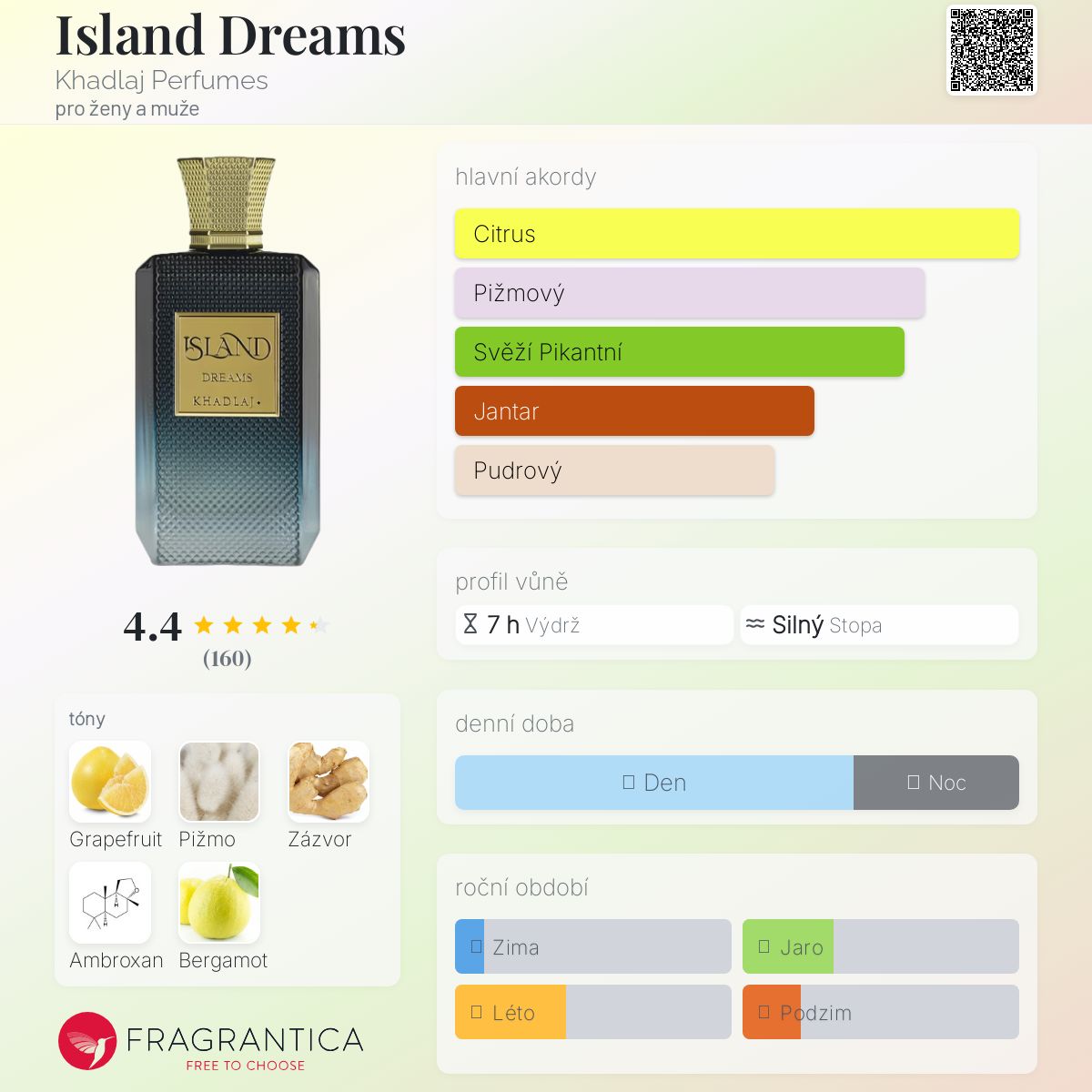 Island Dreams podle Khadlaj Perfumes je Orientální vůně pro ženy a muže. Toto je nová vůně. Island Dreams byl/a uveden/a v roce 2025. Vrchní tóny jsou Zázvor a Bergamot; střední tón jeGrapefruit ; základní tóny jsou Ambroxan a Pižmo.
