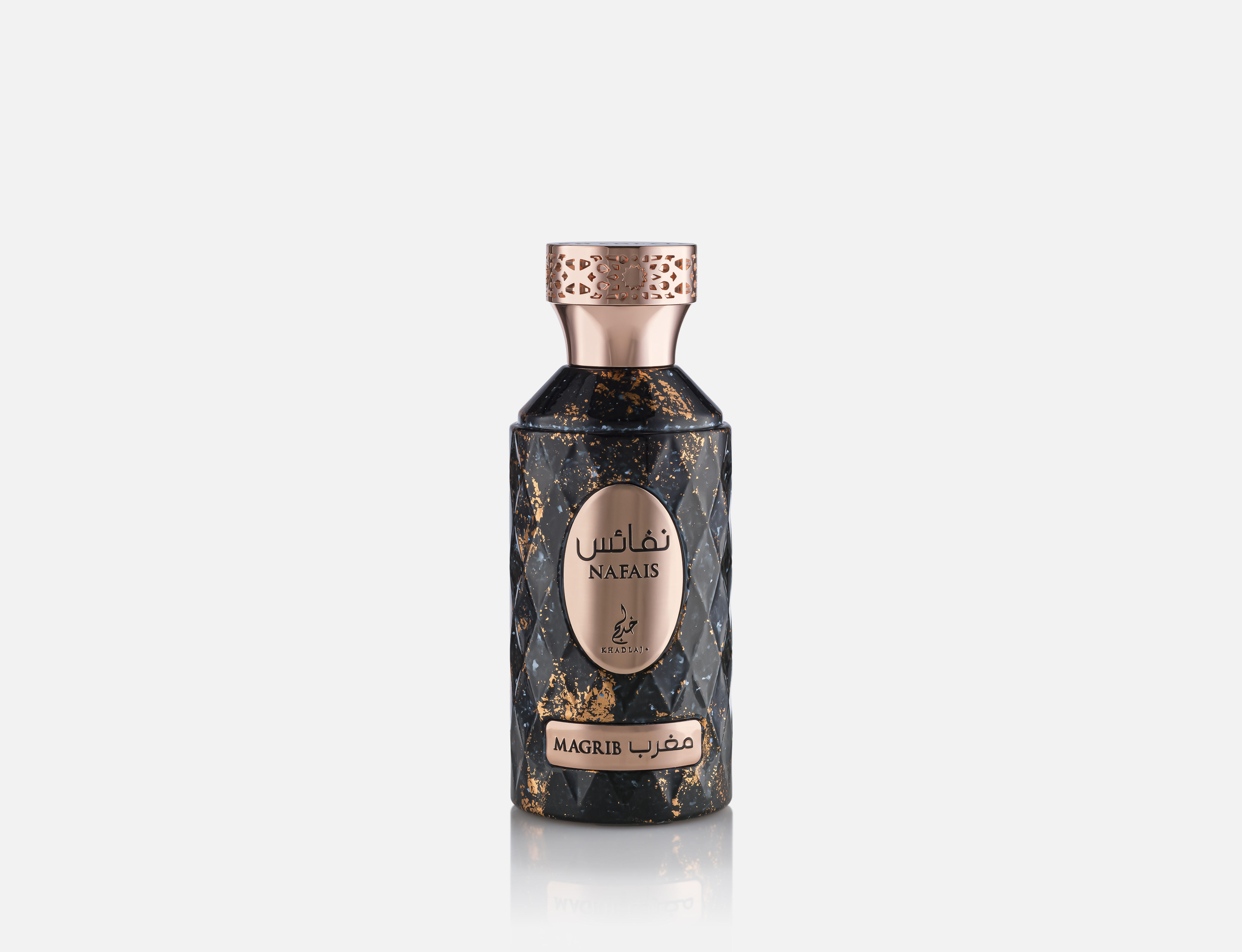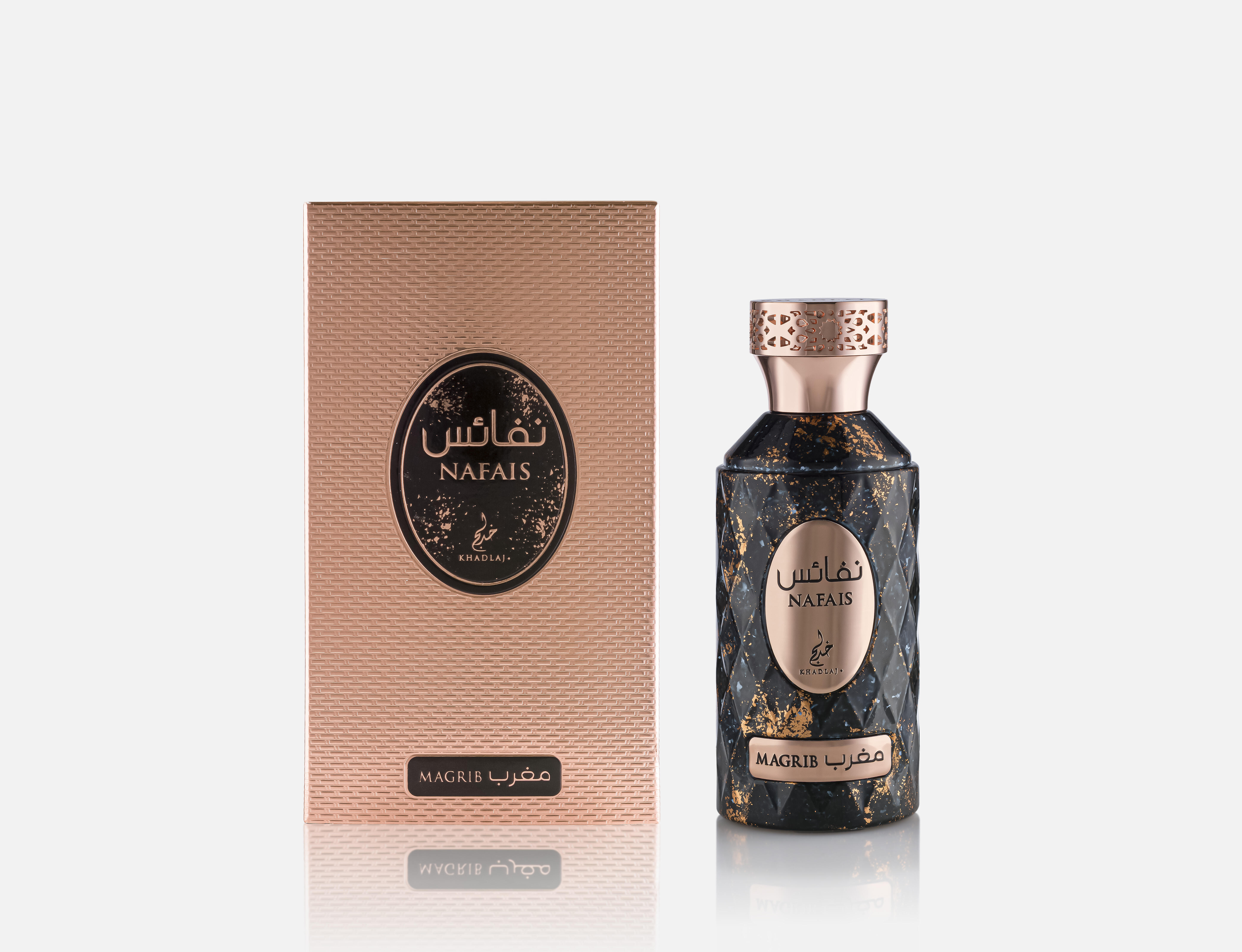 Nafais Magrib podle Khadlaj Perfumes je Citrus Aromatic vůně pro ženy a muže. Toto je nová vůně. Nafais Magrib byl/a uveden/a v roce 2025. Vrchní tóny jsou Mandarinka, Grapefruit a Yuzu; střední tóny jsouTropické ovoce a Galbanum ; základní tóny jsou Aldehydy, Ozonové tóny a Pižmo.