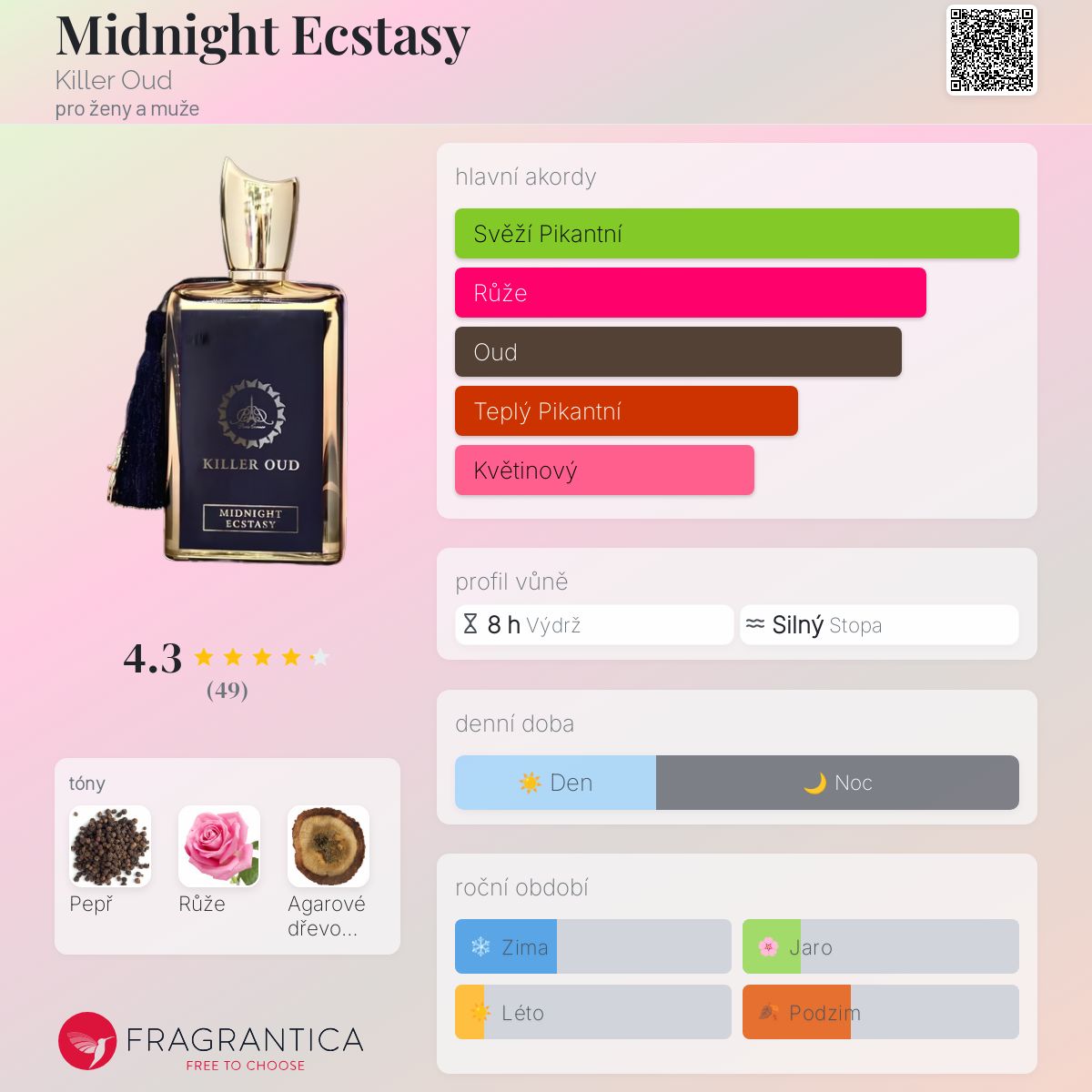Midnight Ecstasy podle Killer Oud je Floral vůně pro ženy a muže. Midnight Ecstasy byl/a uveden/a v roce 2020.